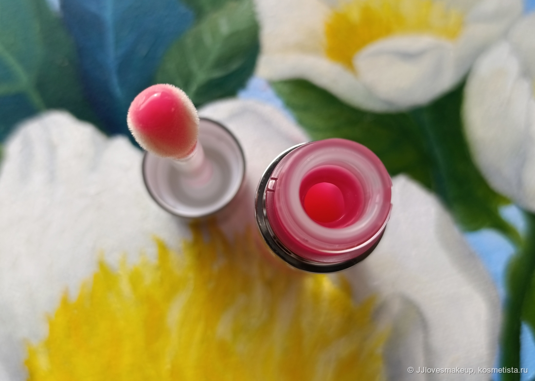 Аппликатор: огромная лапка на средней по длине ножке. Я такие люблю и в целом, и непосредственно у Lip Comfort Oil. Аппликатор очень нежный, пушистый, красить губы им безмерно приятно, иногда хочется просто лишний раз повести им по губам. На ножку посажен не жестко, гибко покачивается у основания.