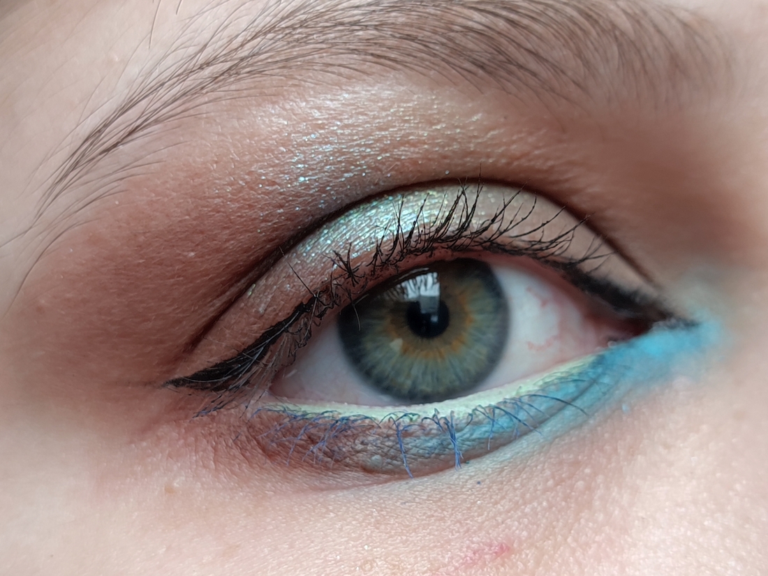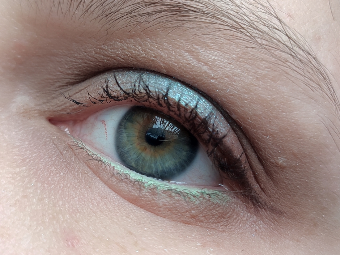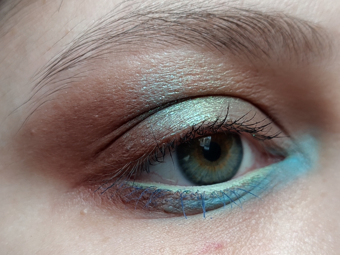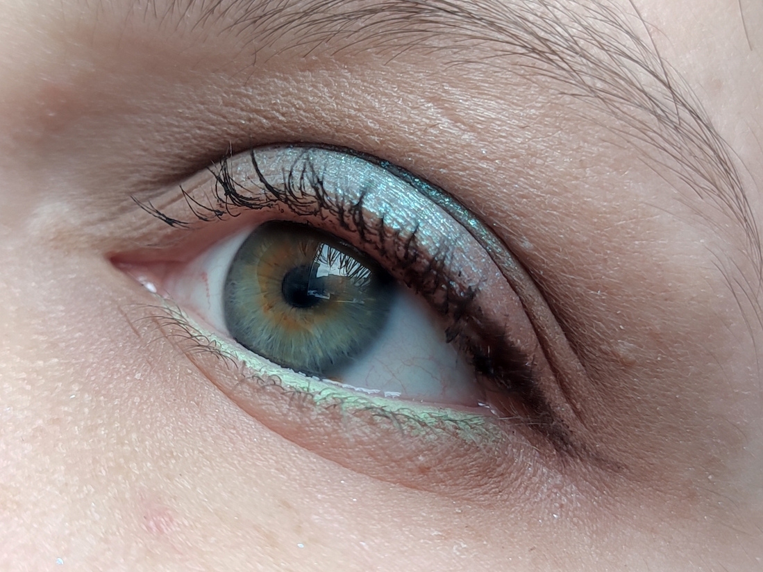 Без базы, на ресницах зелёная тушь Climt.
