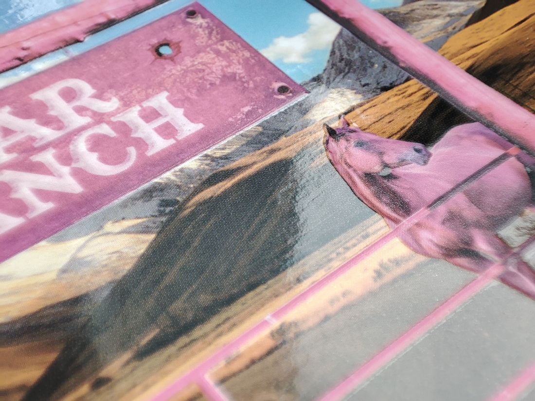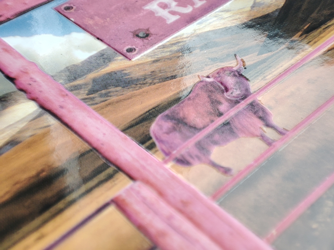 Упаковка выполнена из гладкого наполированного картона, на котором нас встречают изнуренные жарой матовые выпуклые ворота с яком и конем. В дизайне читается гламурный вестерн.