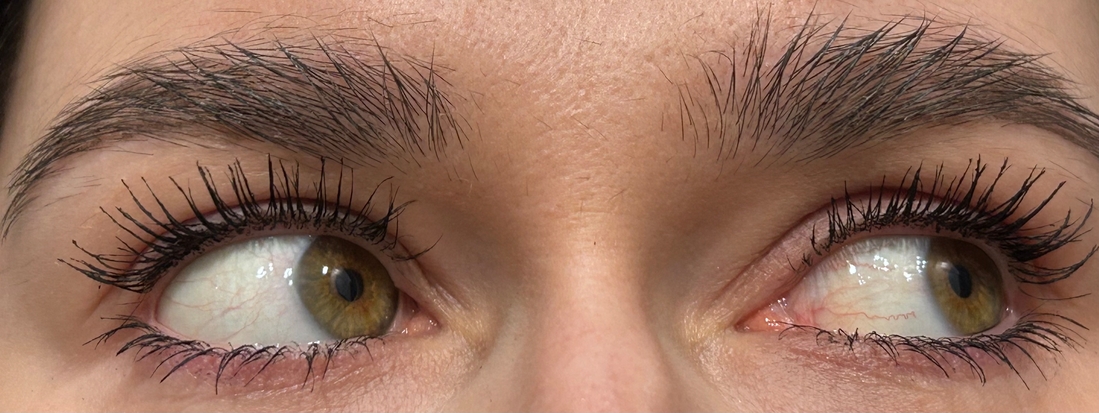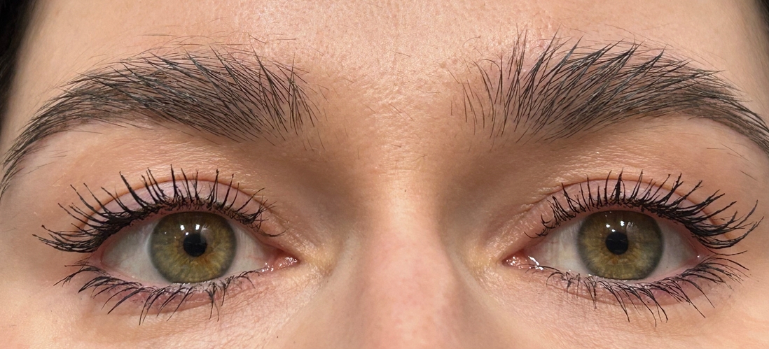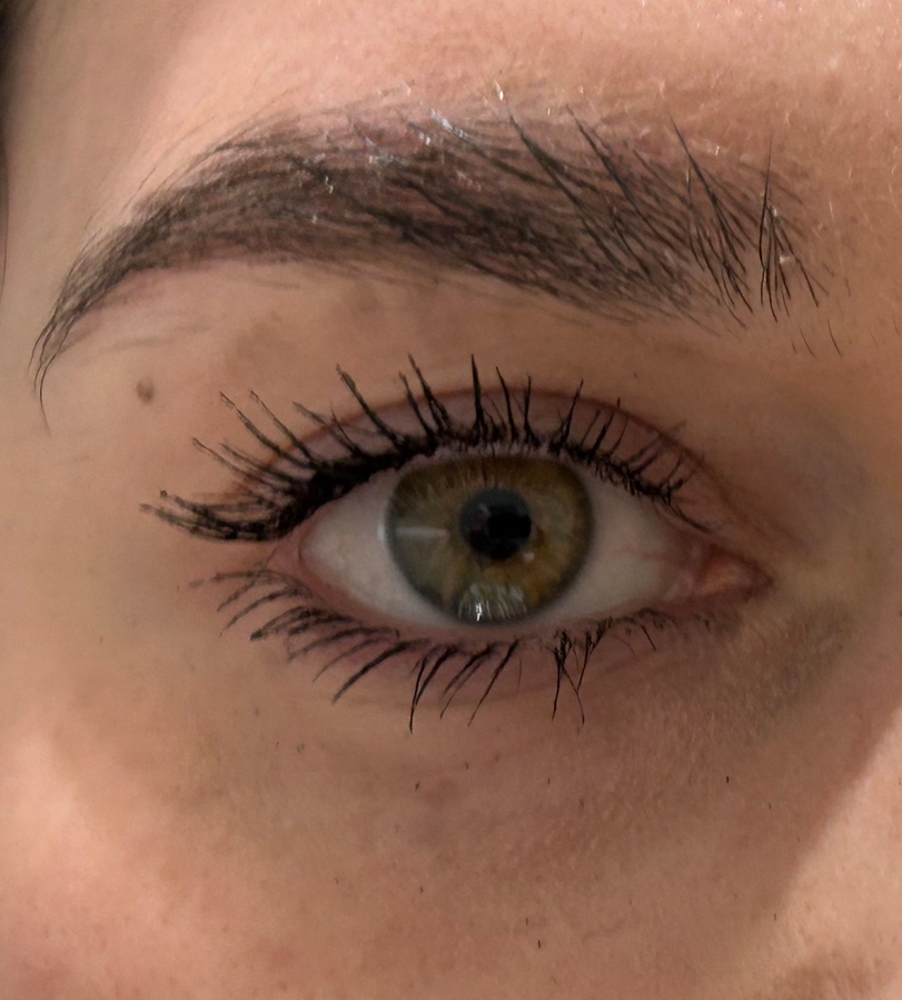При первом покрасе героиня поста дала на ресницах не ярко выраженный эффект — средненький я бы даже сказала. Потом я дала ей немного отлежаться и это пошло на пользу.