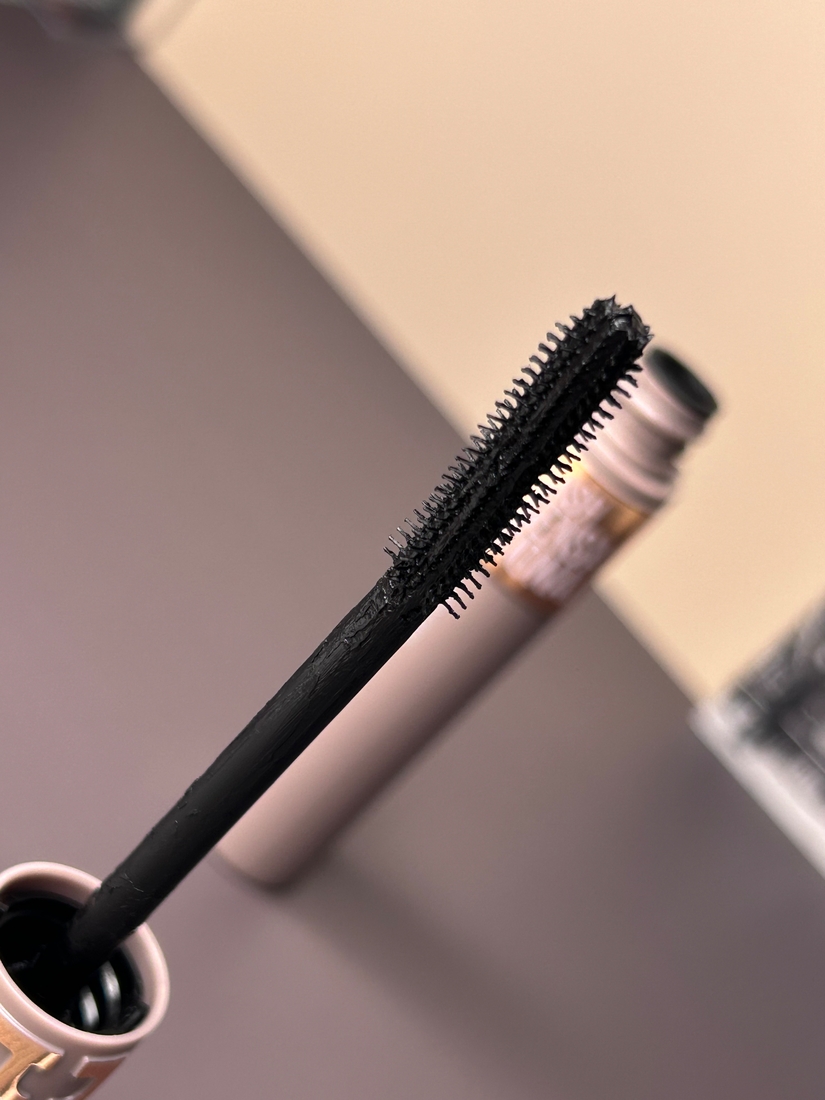 Щеточка у туши силиконовая, спиралевидная. Немного гнется, но при должном усилии. Производитель пишет, что она «точно захватывает каждую ресницу от корней до самых кончиков, обеспечивая не только заметный подъём, но и идеальное утолщение без комочков».