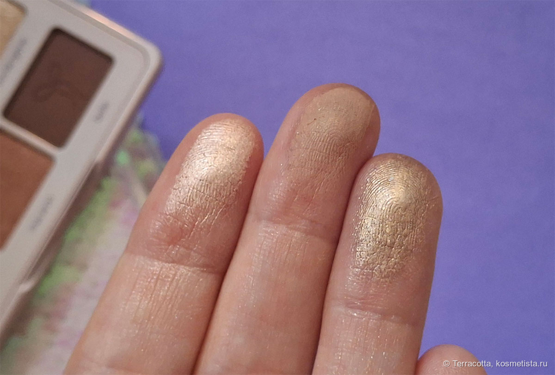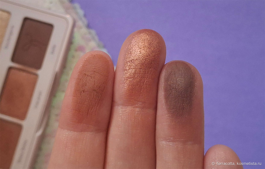 В целом, тени мягкие, с ними несложно работать. Компактность палетки — огромный плюс, легко брать с собой и легко закончить. Вообще в целом палетка приятная, внешний вид, сладкий аромат, красивое тиснение.