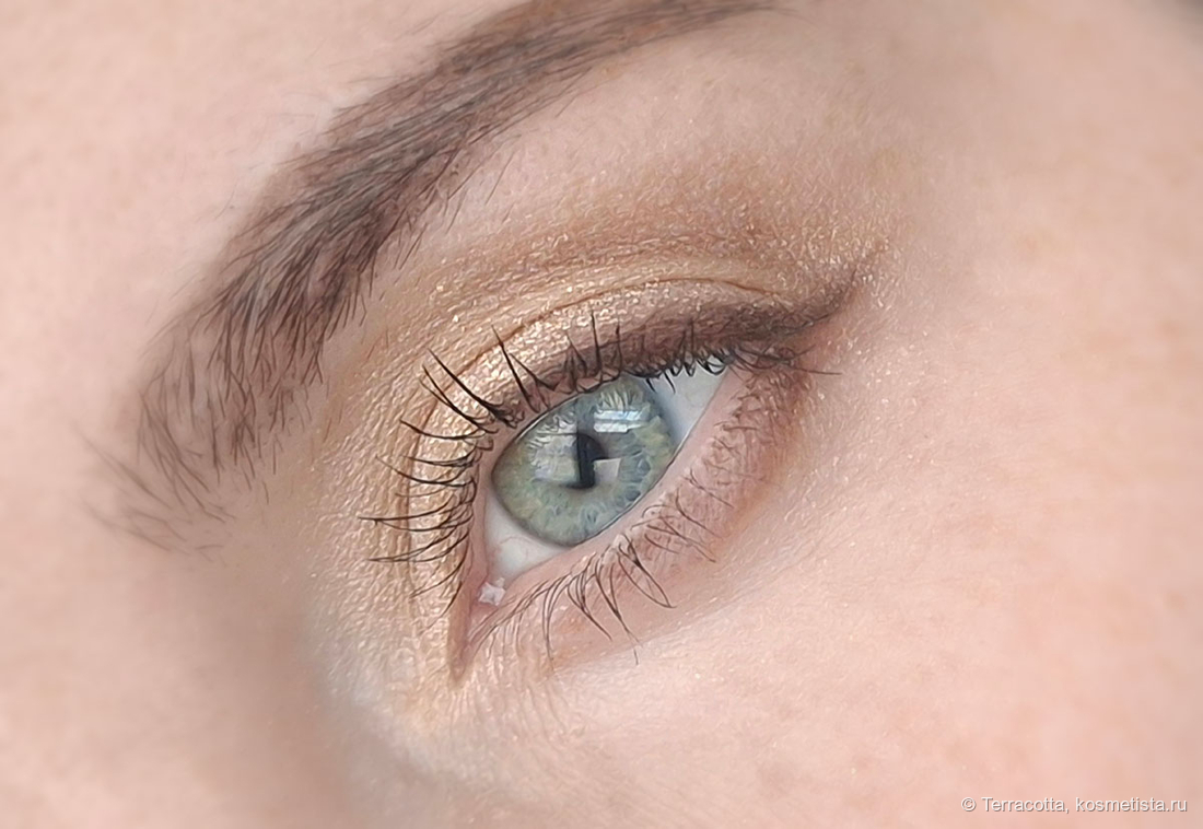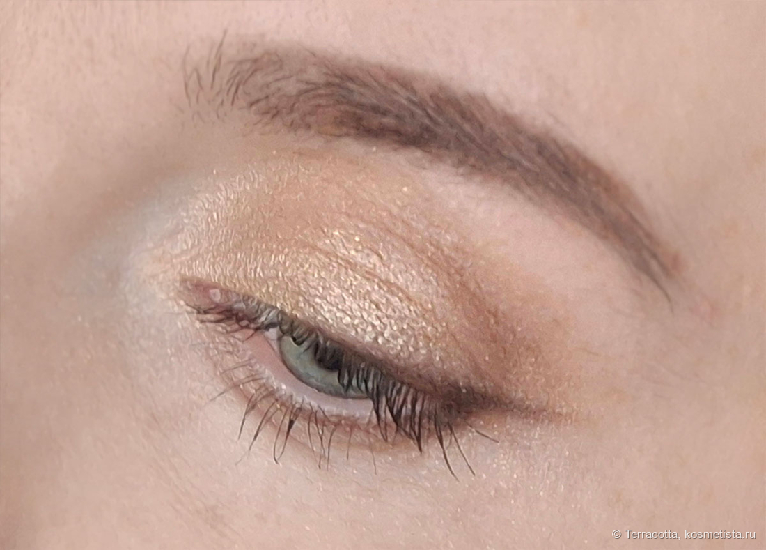 Матовый сложнее набирается, но терпимо. Кистью набрать можно, только нужно наслаивать. Использую его на все веко как базовый оттенок.