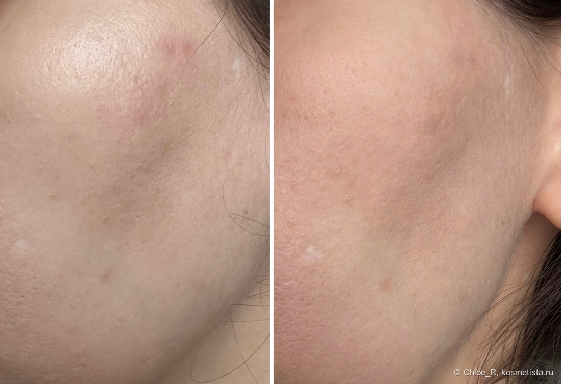 На фото мой результат после 30 дней применения данных ампул. Хорошо видно, что пятнышки постакне посветлели, общий тон кожи выровнялся, стало меньше жирного блеска, она стала более матовой. Также поры стали более чистыми и подстянутыми.