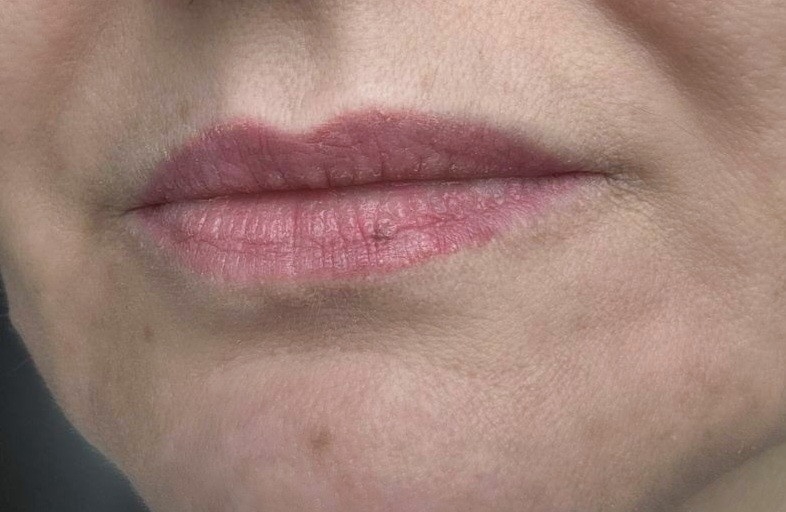 А здесь я нанесла блеск без карандаша, просто на голые губы в один слой: