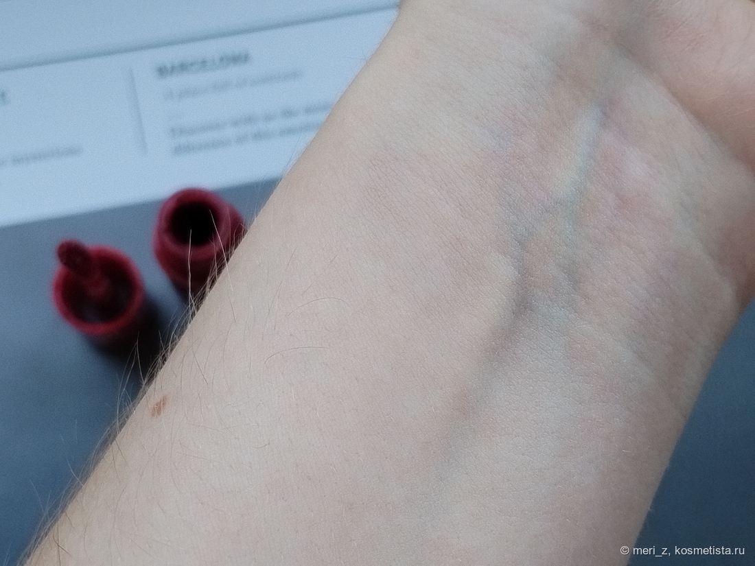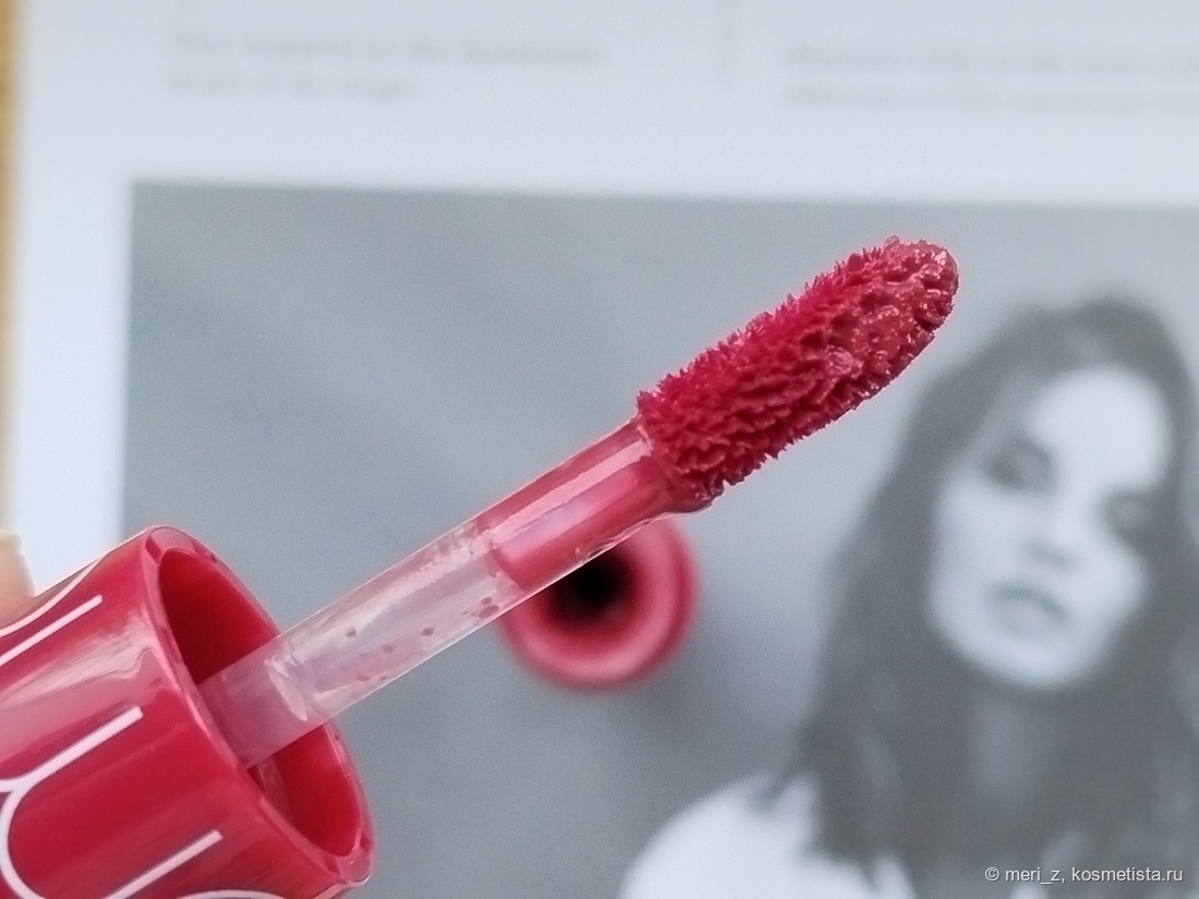 - Этот тинт относительно помад, которые есть в моей коллекции, достаточно стойкий. Фиксируется на губах. Вельветовый тинт из этого же набора легко через некоторое время «сместить», он «подвижный», смыкать губы надо осторожно :) Тут же я такого пока не заметила.