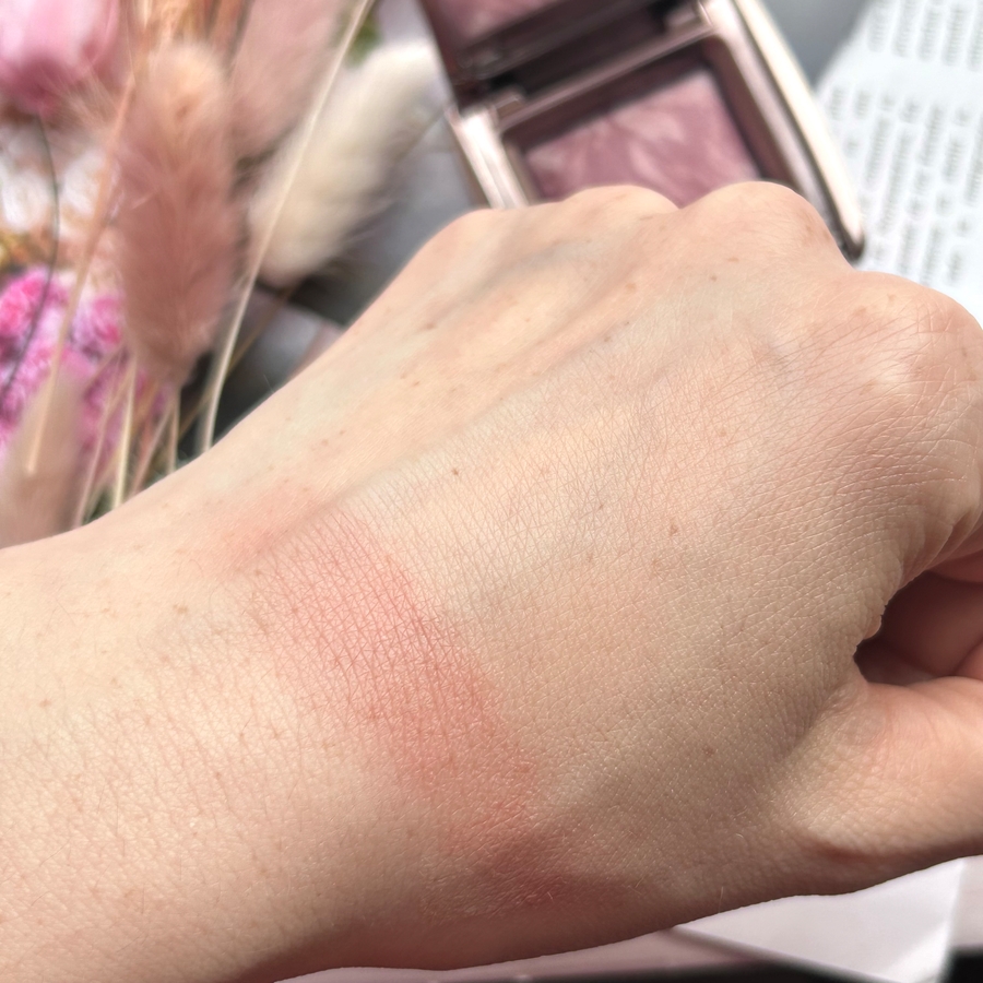 Текстура румян легкая, это спрессованные сияющие частички, которые дают на коже лёгкое свечение без блесток. По сути это тонкая вуаль, которая сглаживает рельеф кожи и придает красивый спокойный румянец.