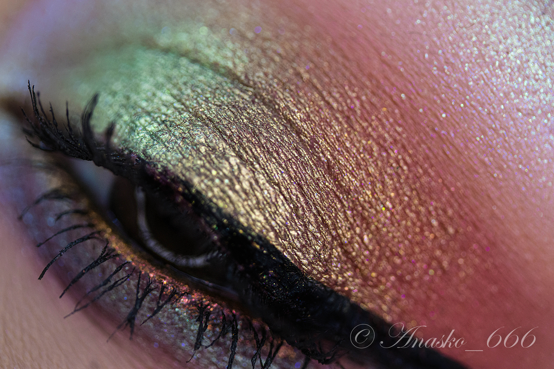 Сегодня в посте два рефила: мультихром и сатин попроще. В работе оба приятные и простые, я для большей яркости наношу на липкий праймер. Оба рефила мелкие по помолу, набираются любой кистью, веко не «кукожат» как бы плотно их не наносить.