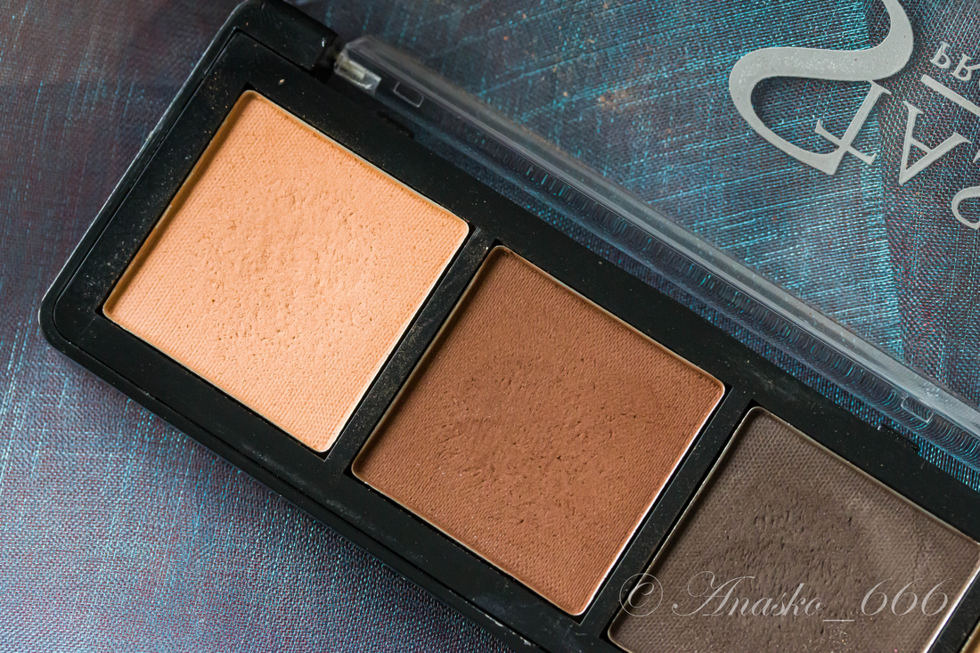 Безусловно, качество на высоте, как и во всех других, что у меня есть. А вот гамма конекретно этой скучная, хотя и довольно ходовая. Палетка в коричневой, теплой гамме, все тени в ней матовые. Вес каждого рефила аж 3 гр, что делает эти палетки бесконечными.