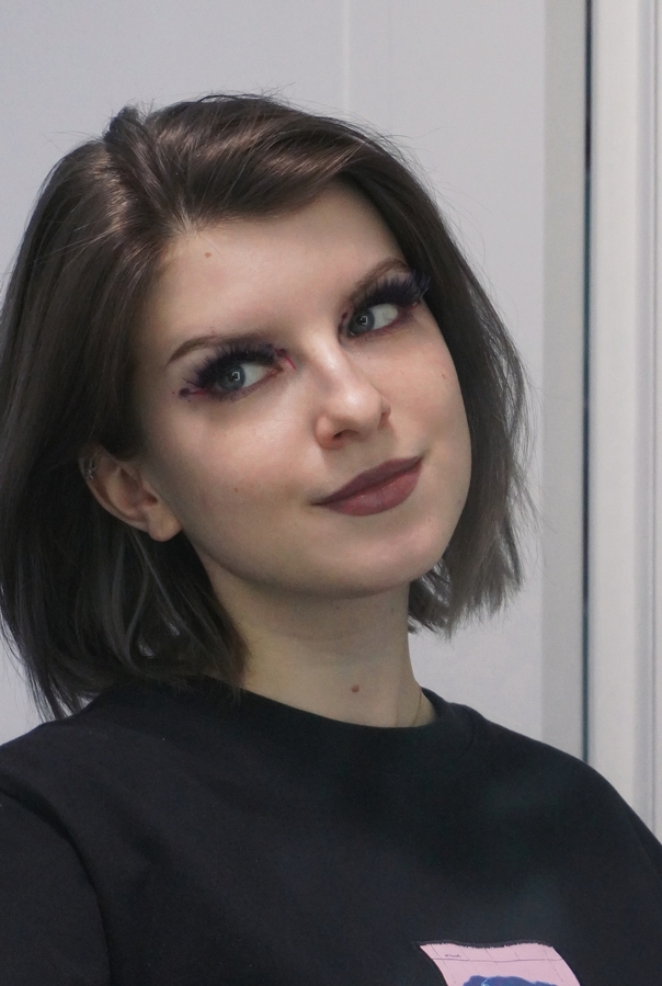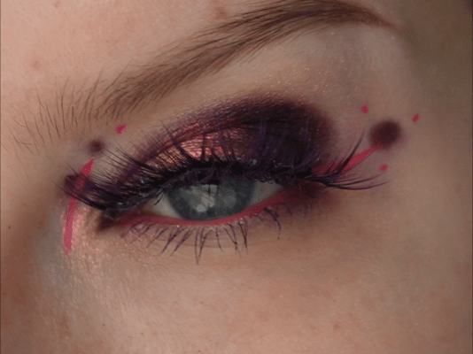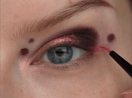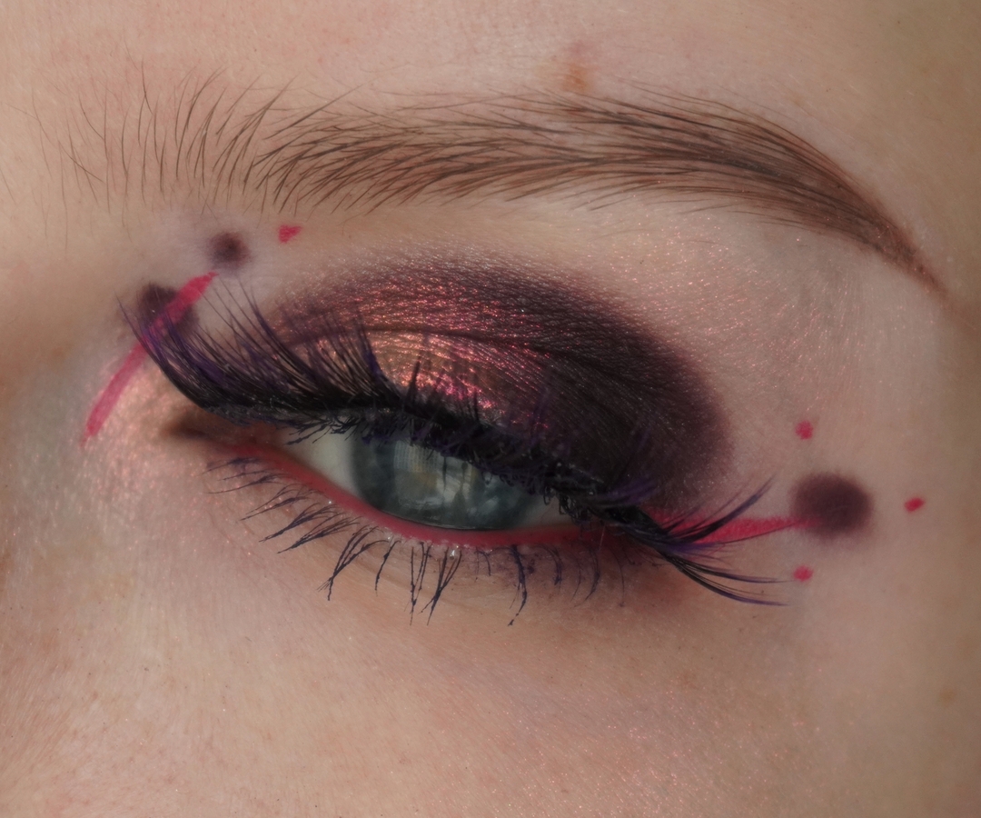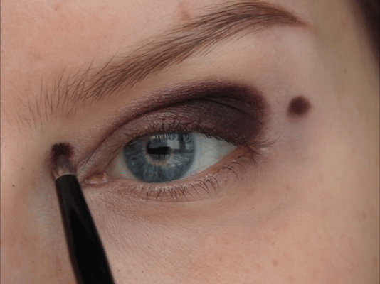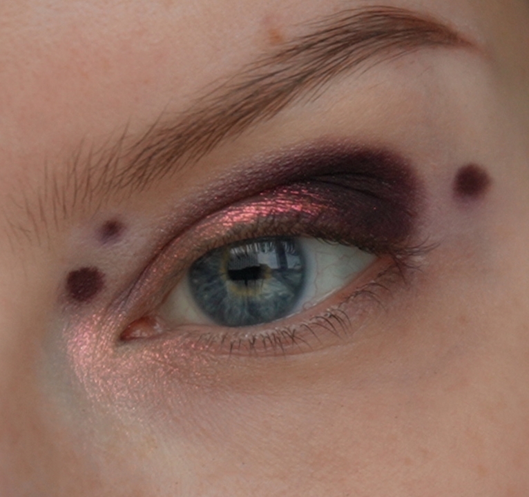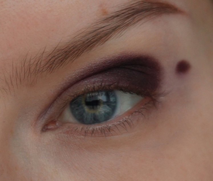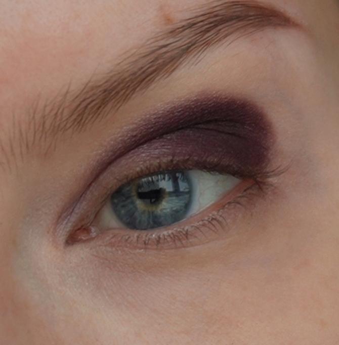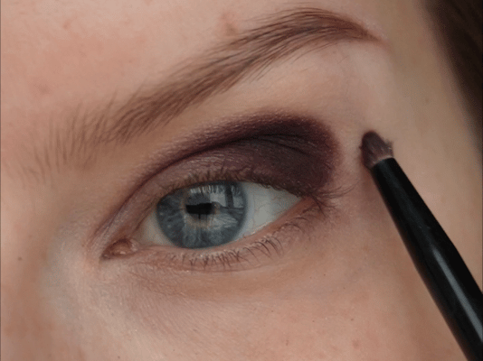 - Затем темно-фиолетовым из палетки Love начала прорабатывать складку века.