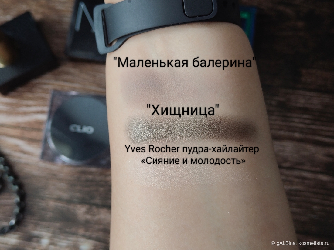 - Yves Rocher пудра-хайлайтер «Сияние и молодость» во внутренний уголок глаза;