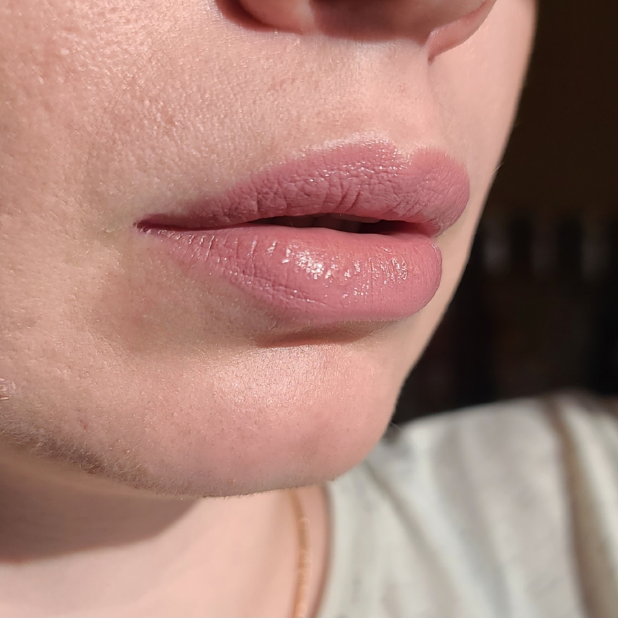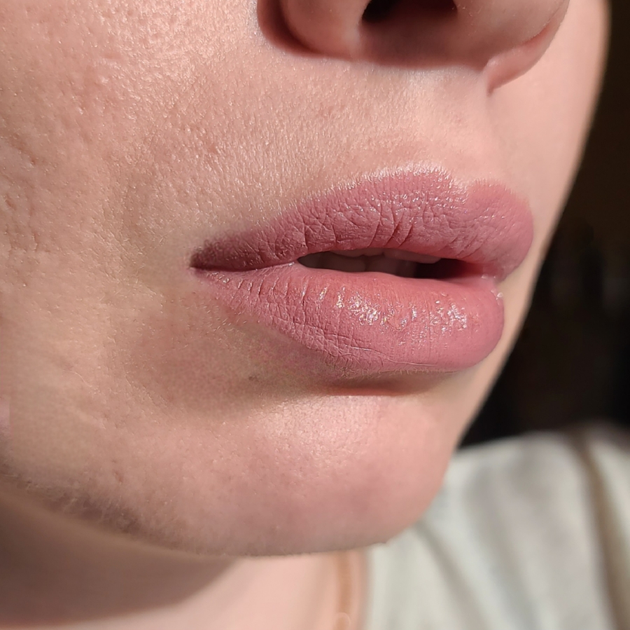 Первые пару применений помада была плотновата, но после разогрева на губах стала мягкой и податливой, совсем не как пластилин.