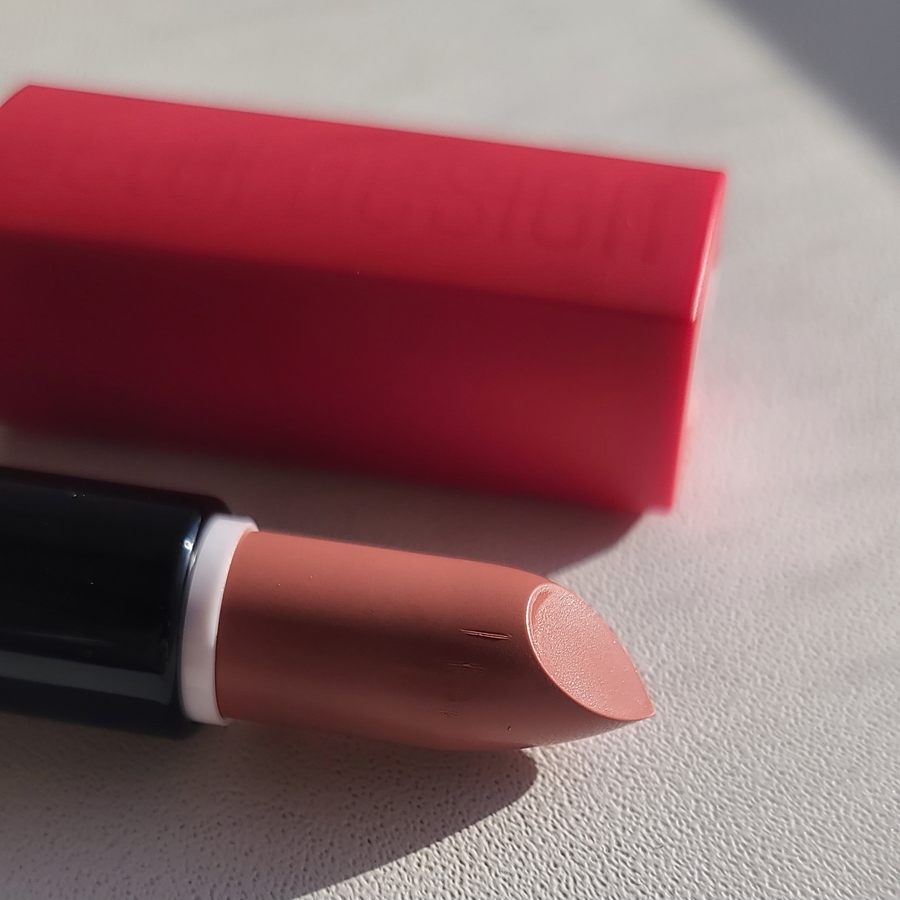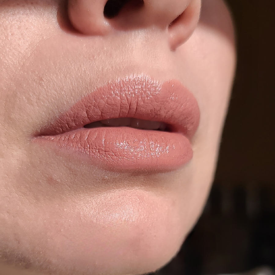 Этот оттенок оказался интересным хамелеоном. При дневном свете он выглядит как нейтральный розово-коричневый микс, очень естественный и ненавязчивый. Но при искусственном освещении он включает теплые, почти персиковые нотки, что смотрится неожиданно и очень уютно.