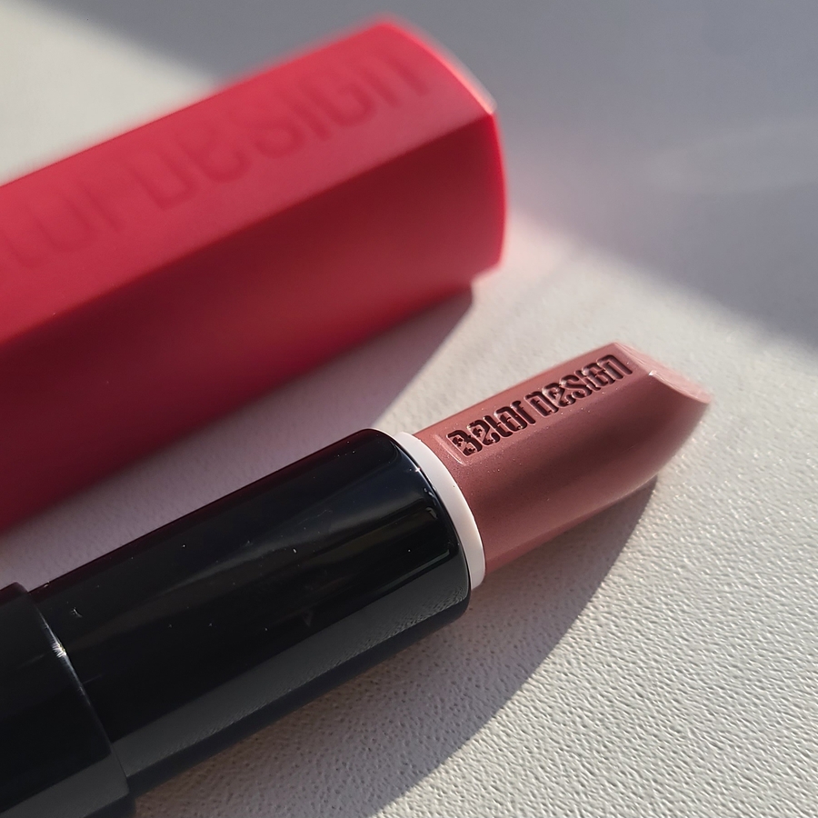 Дизайн минималистичный, но выглядит стильно. Колпачок фиксируется надёжным щелчком, что важно для ношения в сумке. На донышке пропечатан номер оттенка, это очень удобно при выборе в косметичке. Вес стандартный — 4,3 г.