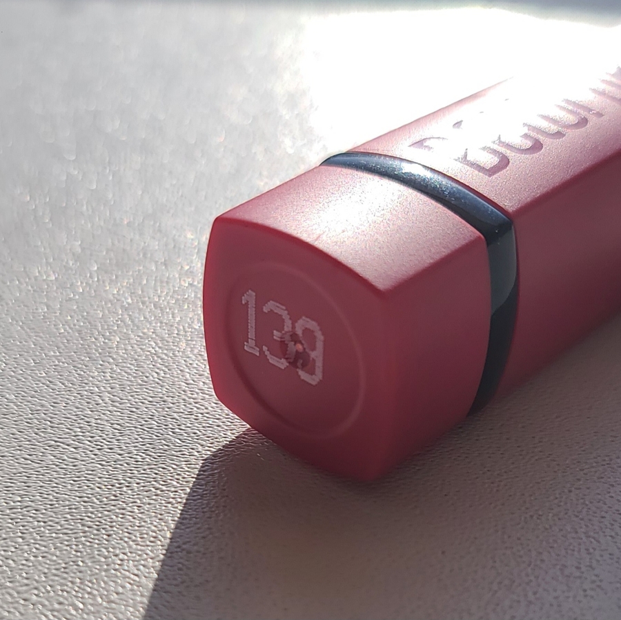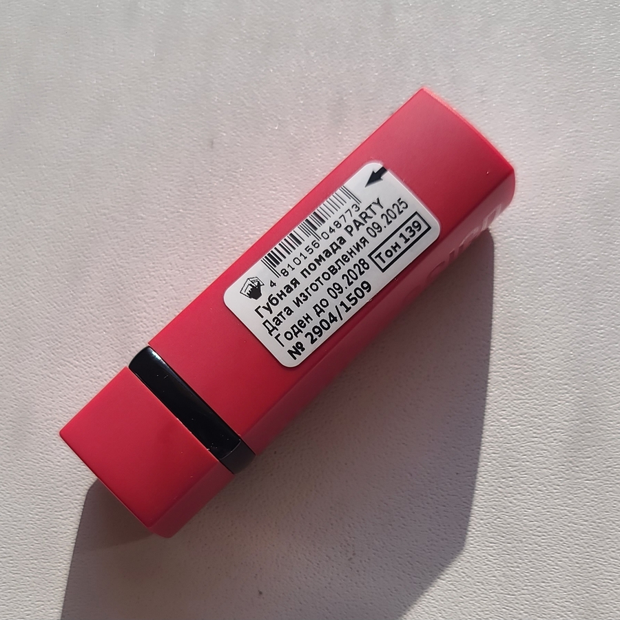 Из минусов — помада немного ощущается на губах, создавая лёгкую плёночку. Это не дискомфорт, а скорее присутствие, к которому нужно привыкнуть. Стойкость, как и у 139-го тона, средняя.