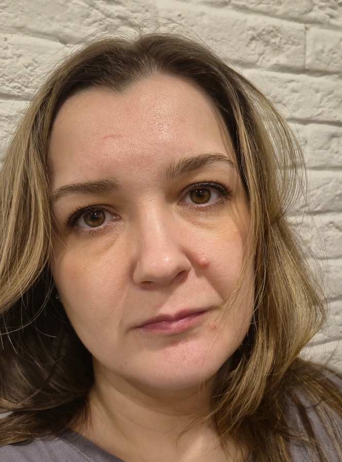 А теперь я покажу, как выгляжит тон при нанесении, при полном макияже и после рабочего дня: