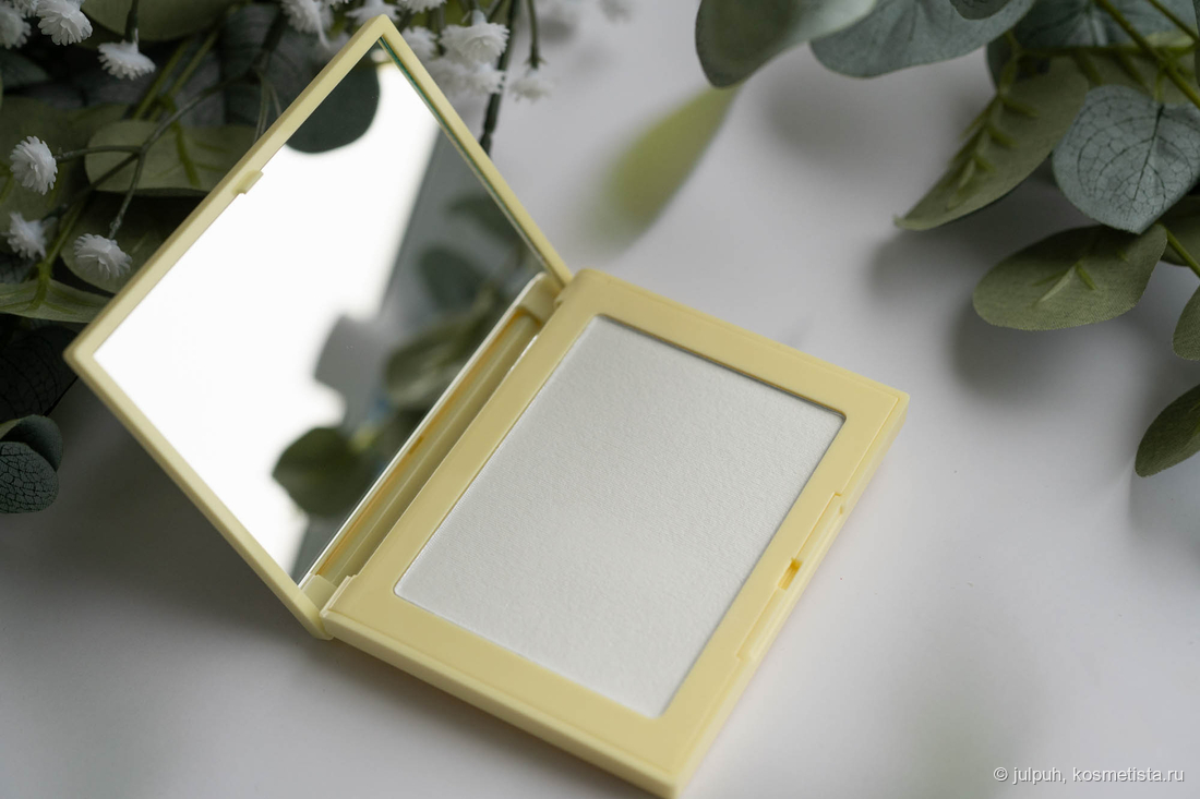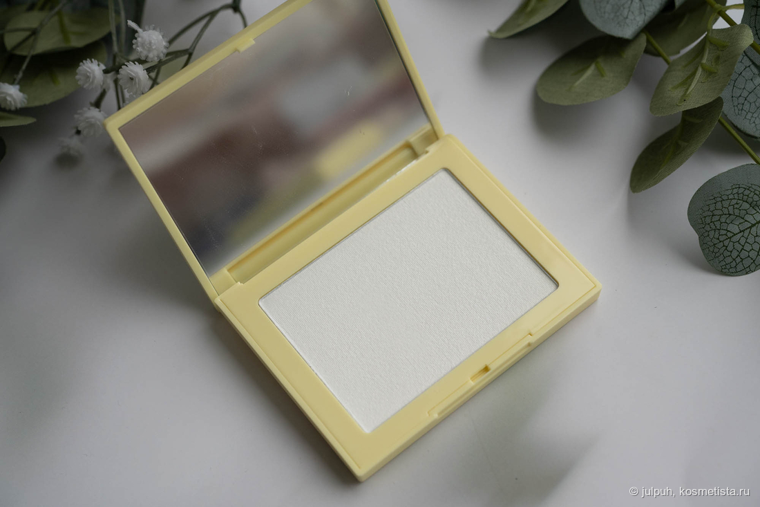 Пудра имеет небольшие сияшки в составе, но на фото их практически не видно. На коже соответсвенно тоже. В остальном пудра прозрачная, эффект выбеливания не дает, незаметна на коже.