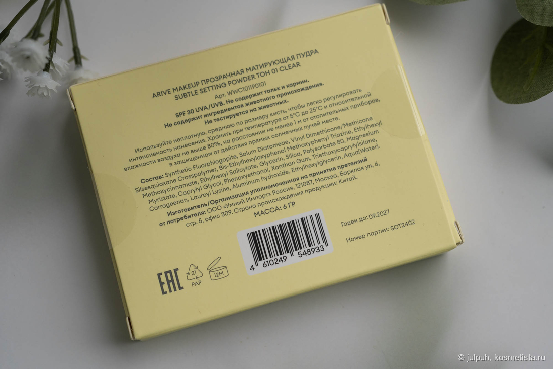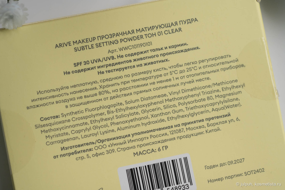 Пудра заявлена с защитой UVA-UVB 30.