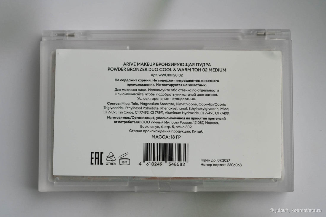 Любопытно, что бронзер продается без коробочки, но надежно заклеен.