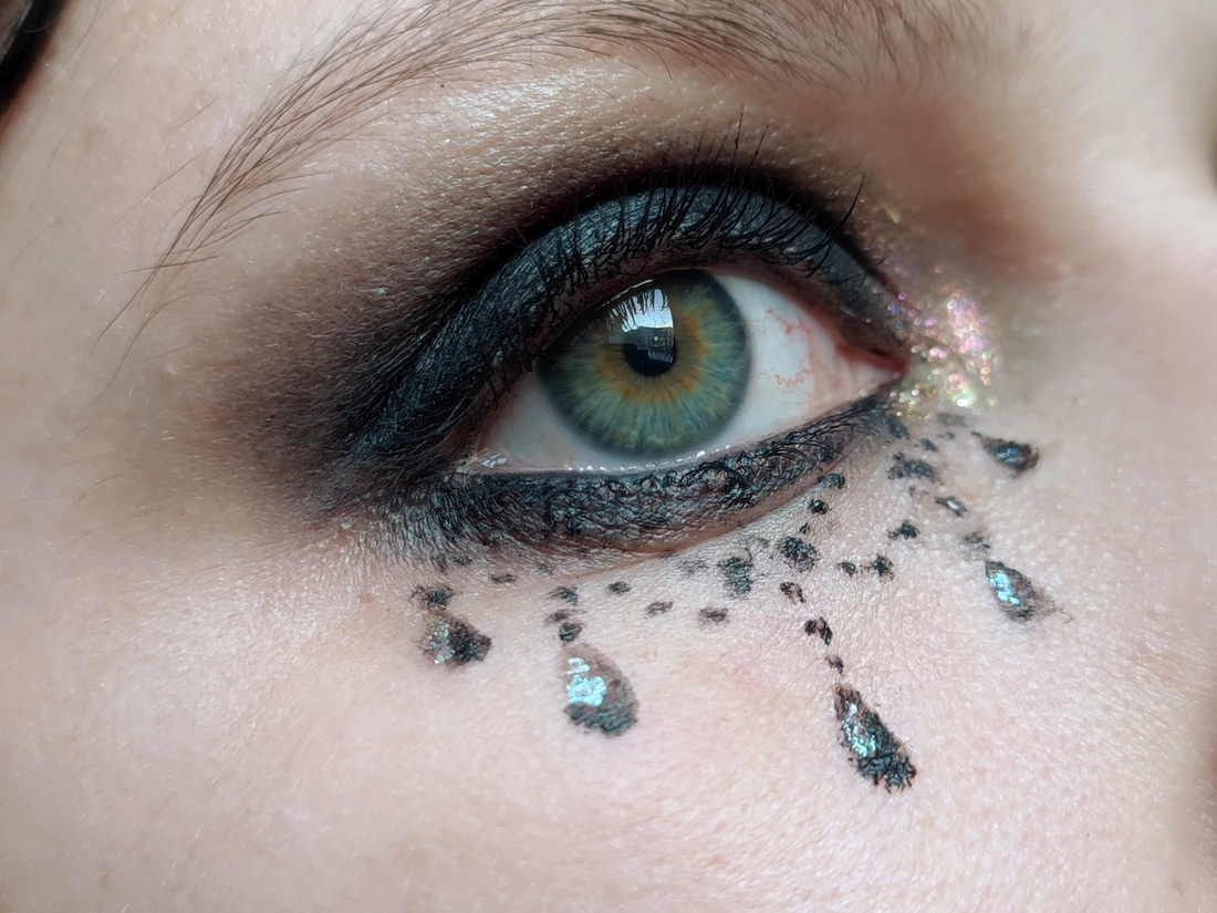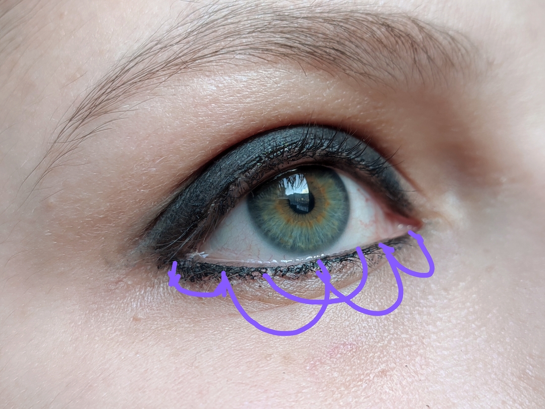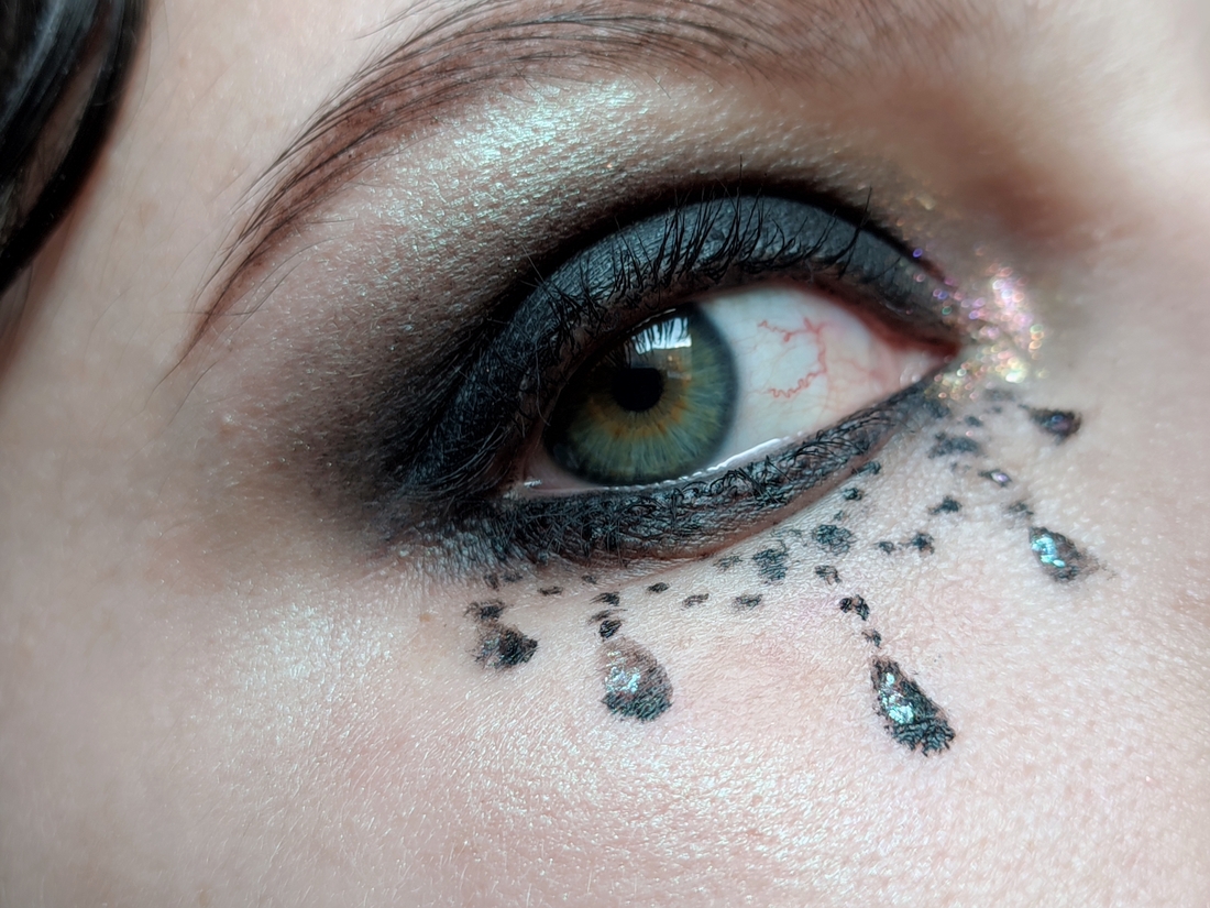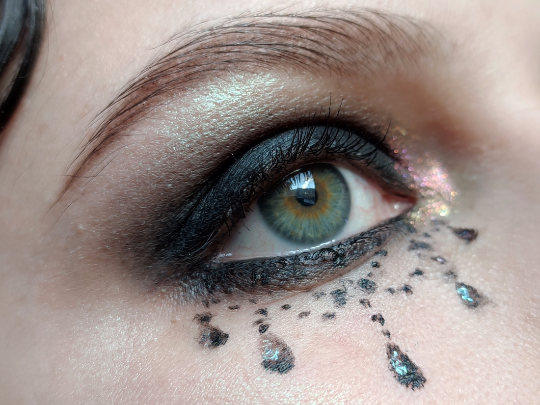 Но у нас неоготический макияж, поэтому поностольгировала над своим маленьким глазом и продолжаю возюкать по веку карандашом. Делаю карандашную подложку под тени там, где мне бы хотелось видеть пигмент плотнее.