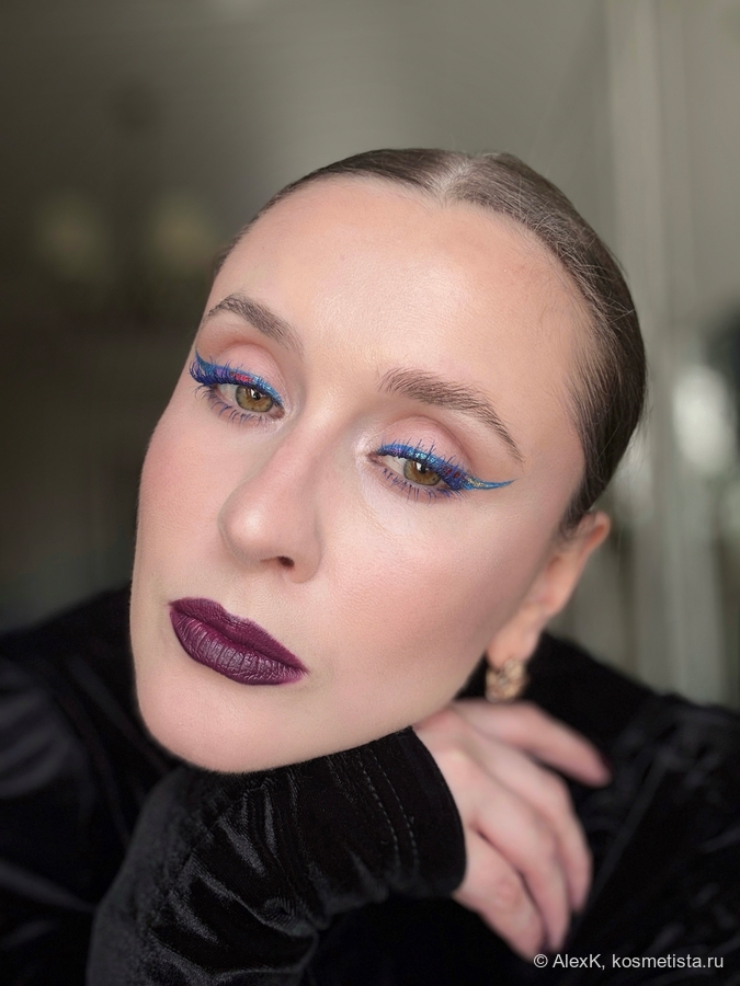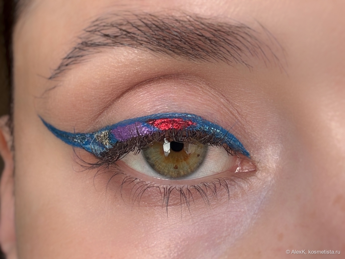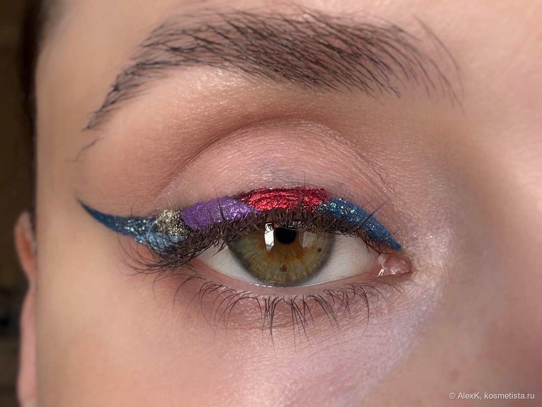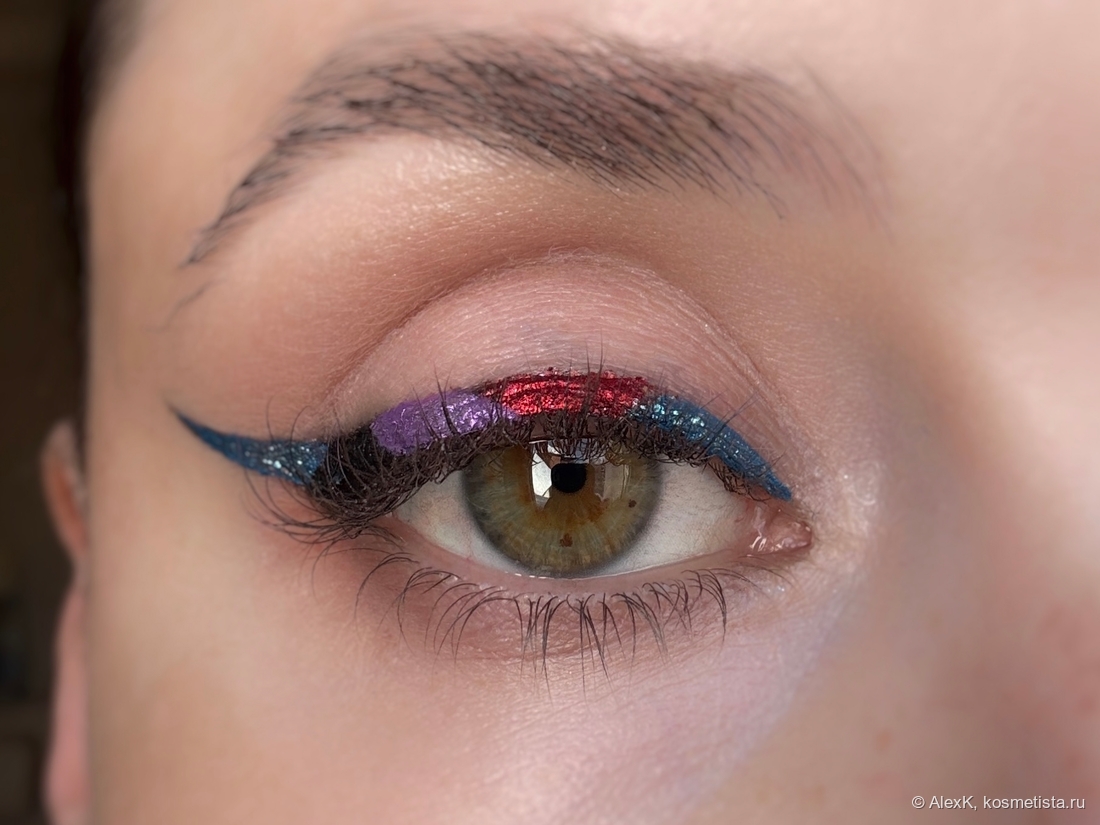 Добавила фиолетовый лайнер Limoni и украсила его пигментом Тамми Танука Аметистовая пыль. Красной подводки у меня нет. Поэтому просто налепила спаркл Тамми Танука Инквизитор на клей для глиттера NYX Professional MAke up Glitter Primer.