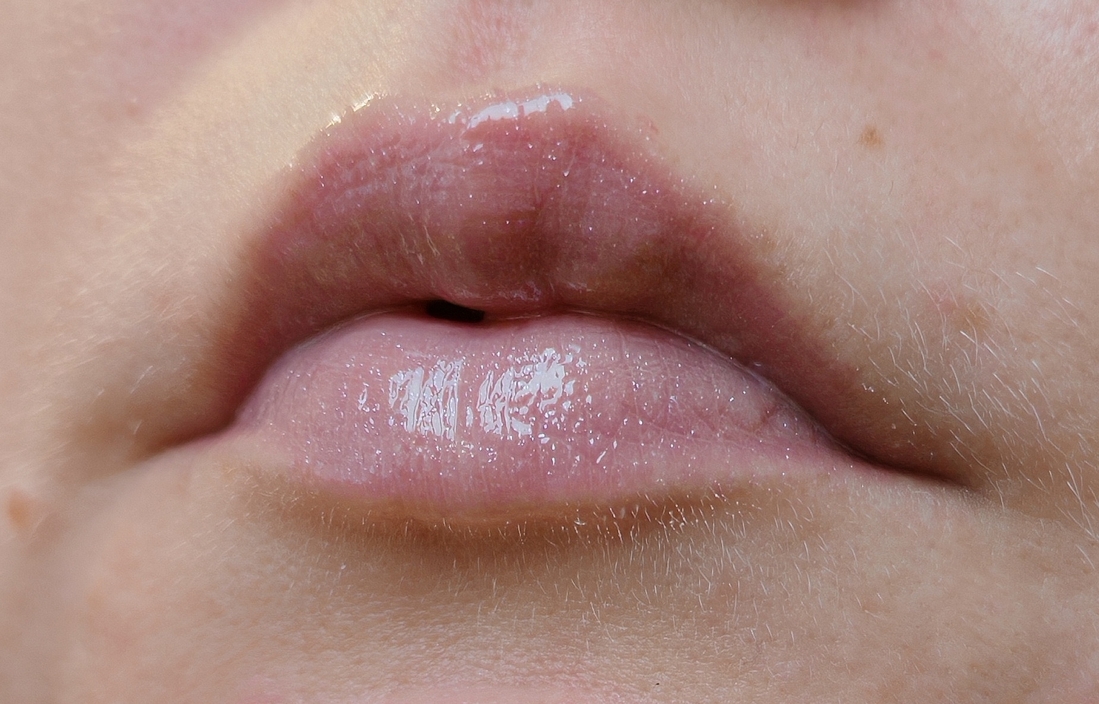 В два слоя блеск выбеливает губы.