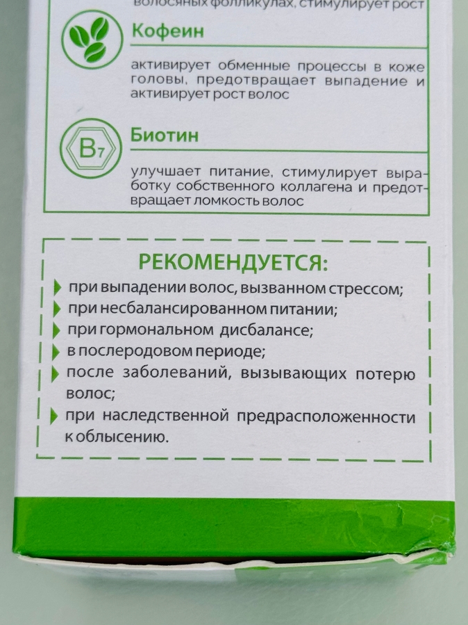 Кофеин активирует обменные процессы в коже головы, предотвращает выпадение и активирует рост волос.