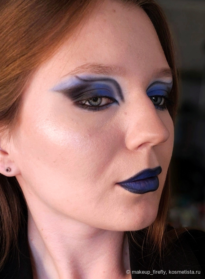 На губы буду также наносить кремовые тени, конечно они не стойкие, но для фотографии подойдут. Контур делаю чёрными матовыми тенями.