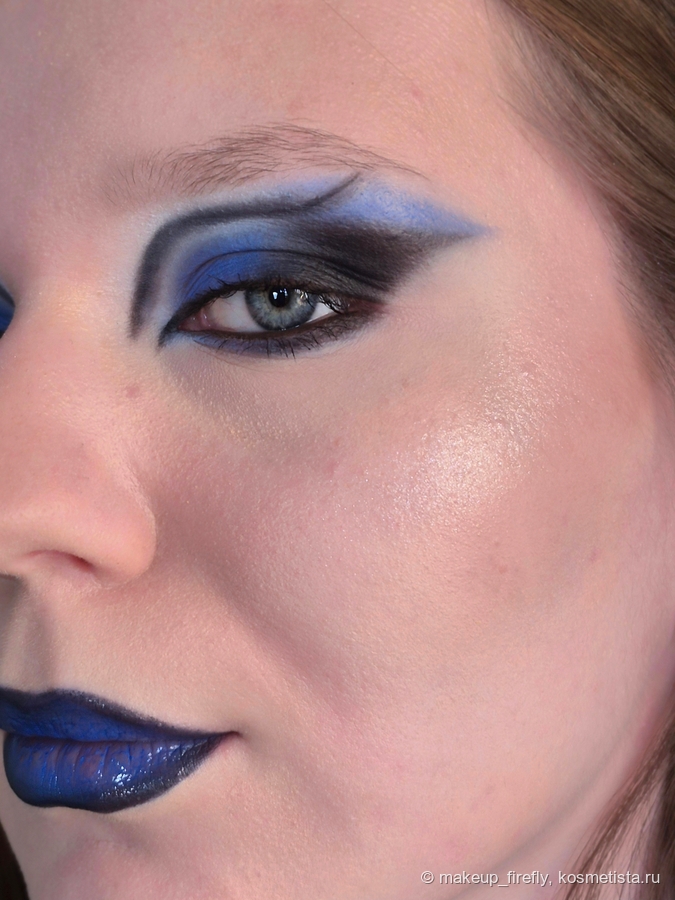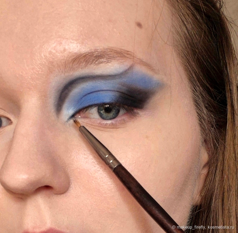 На нижнее веко добавляю также кремовый синий и матовый чёрный.