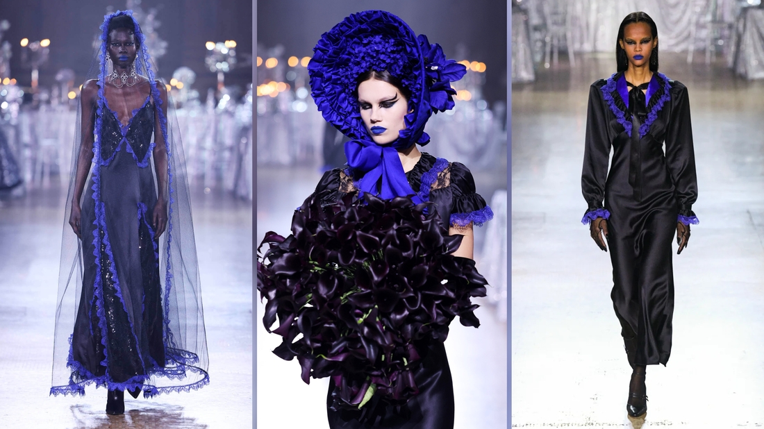 В поисках вдохновения наткнулась на модный показ Rodarte FW23 Gothic Fairy. Очень интересные образы, советую ознакомиться даже тем, кому тематика не близка. Зацепило меня в нём несколько образов и своей цветовой гаммой и необычными макияжами с огромными стрелками и цветными губами, поэтому мне захотелось сделать макияж в такой же гамме.