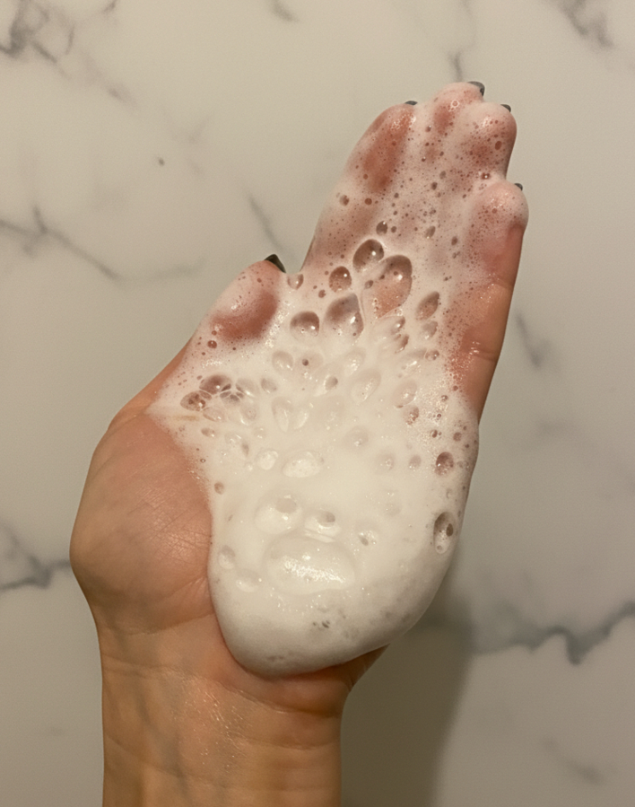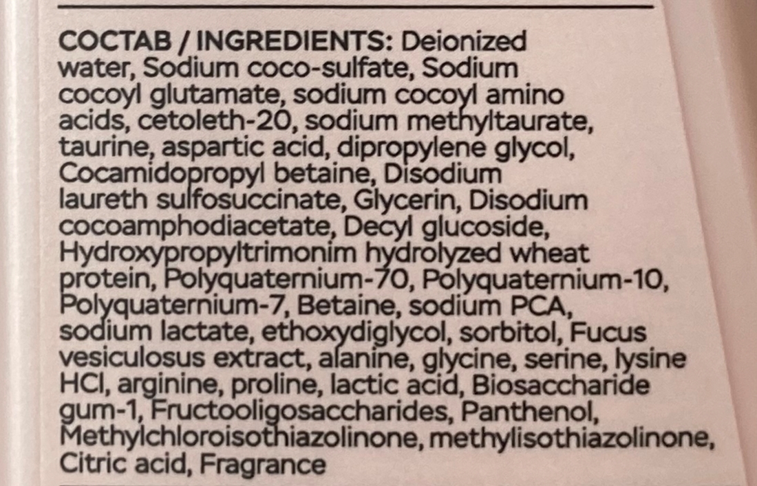 Это безсиликоновый шампунь, поэтому подойдёт для адептов КГМ (Curly girl method). На мягких ПАВ без SLS с большим количеством увлажняющих и NMF-компоненты, которые не просто удерживают влагу, снижают ощущение стянутости, но и поддерживают кожный барьер. А ещё аминокислоты, которые снижают ломкость волос и защищают окрашенные волосы.