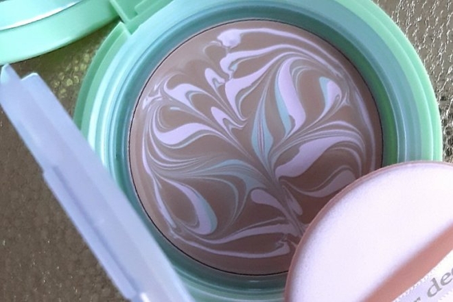 При наборе основы на спонж, есть возможность регулировать оттенок, попадая в более тёмные или более светлые участки. На деле, это не особо получается, всё в любом случае смешивается в один цвет.