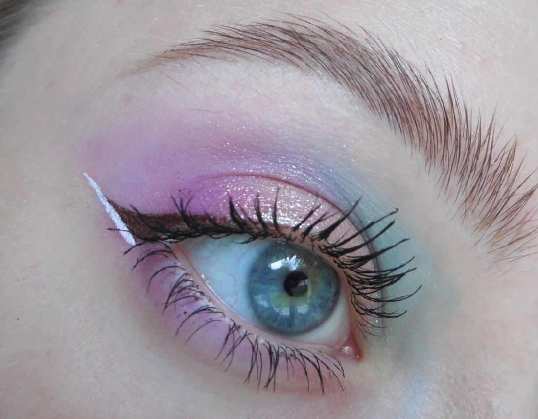 Макияж №4. Здесь комбо из двух цветных подводок. Разные производители, в цене разница в два раза, а вместе сработали просто прекрасно.