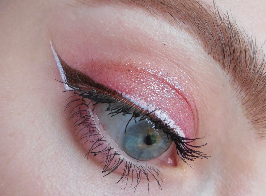 Макияжи №2, 3. Наверное, самый частый мой вариант макияжа с белой подводкой на каждый день — чёрная или коричневая стрелочка и маленькие белые акценты. Могу добавить такой акцент только по нижней части хвостика, могу только от внутреннего уголка до середины стрелочки, а могу и там, и там.