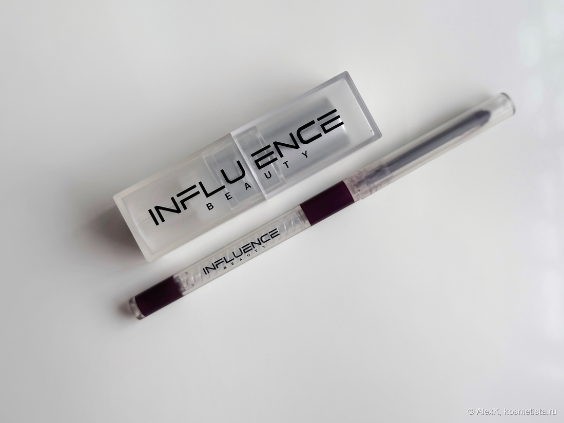 Основной спутник моей помады — карандаш для губ Influence Beauty Lipfluence Long Lasting Lip Pencil в оттенке 12 Сливовый. Забавно, но он намного темнее самой помады. Не самый стойкий и деликатный продукт, но мне нравится цвет. Особенно люблю использовать его в макияже глаз. Покажу чуть позже.