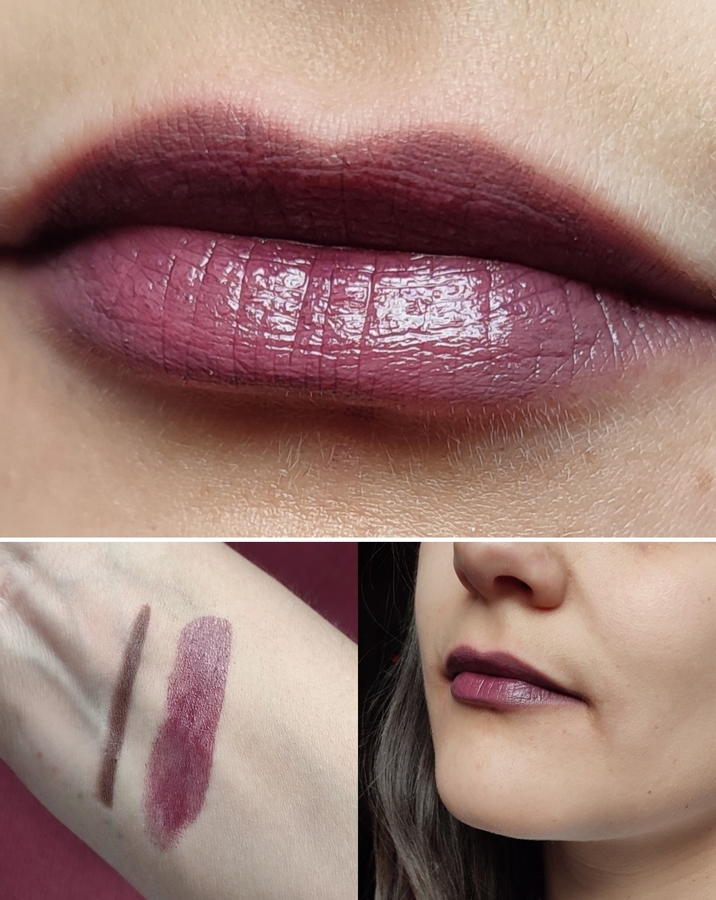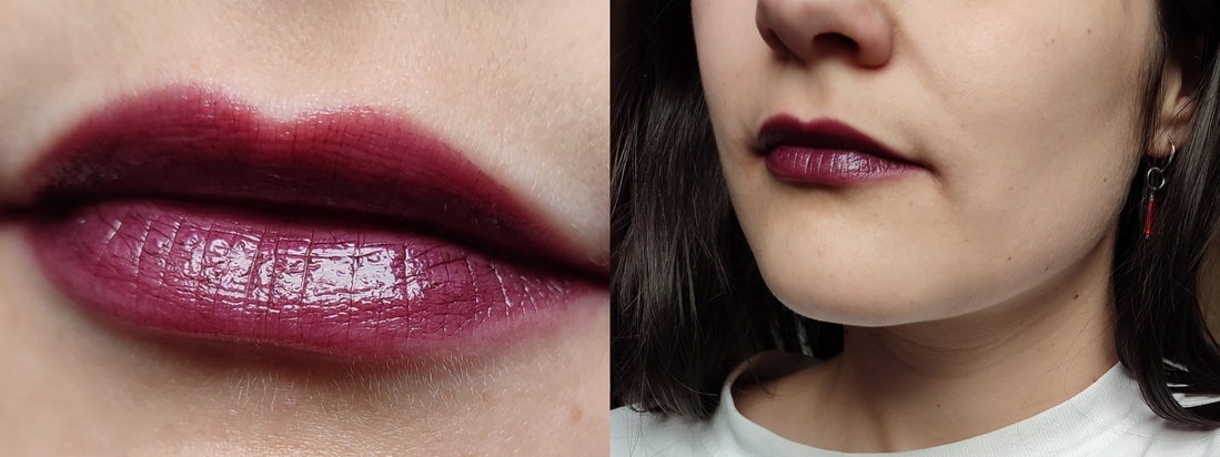 Цвет — темная сочная слива. Я очень хотела эффект на губах, как будто объелась черники в лесу. И этот оттенок точное попадание в мою хотелку.