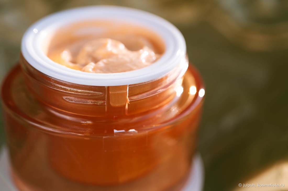 Сама баночка с кремом ярко-оранжевого цвета, бодрящая и радующая глаз в эти серые зимние дни. Как всегда прекрасно смотрится на туалетном столике.