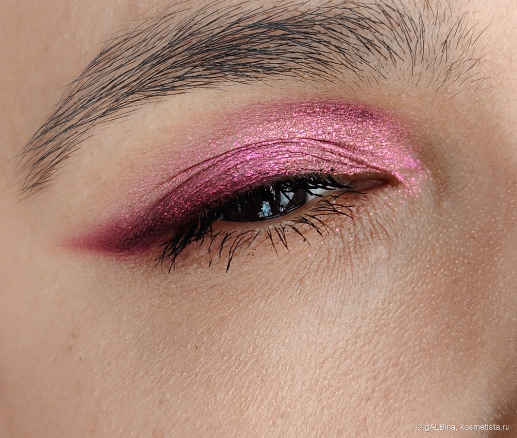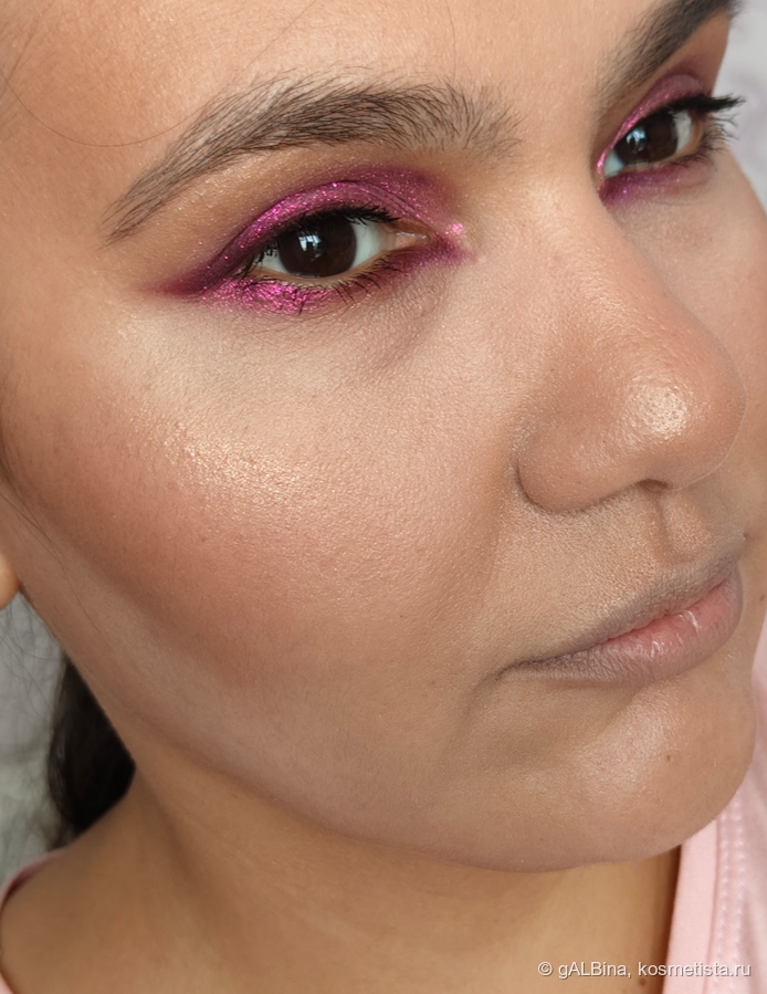 И тут мне показалось, что макияж как будто не окончен и добавила матовый во внутренний уголок глаза нижнего века слегка вытягивая, и до внешнего уголка довела сияшку: