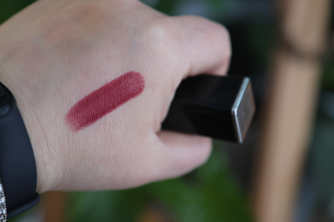 Определить оттенок — самое сложное. Наиболее достоверно выглядит он на свотче. На губах он будто теплеет и рыжеет. Хотя рыжего изначально там нет совсем. Темные ягоды скорее или винные намёки. Ежевика или черноплодка наболее вероятны.