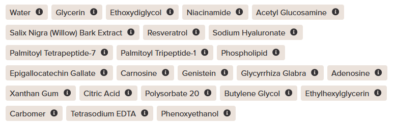 - Palmitoyl Tetrapeptide-7 — уменьшает воспаление