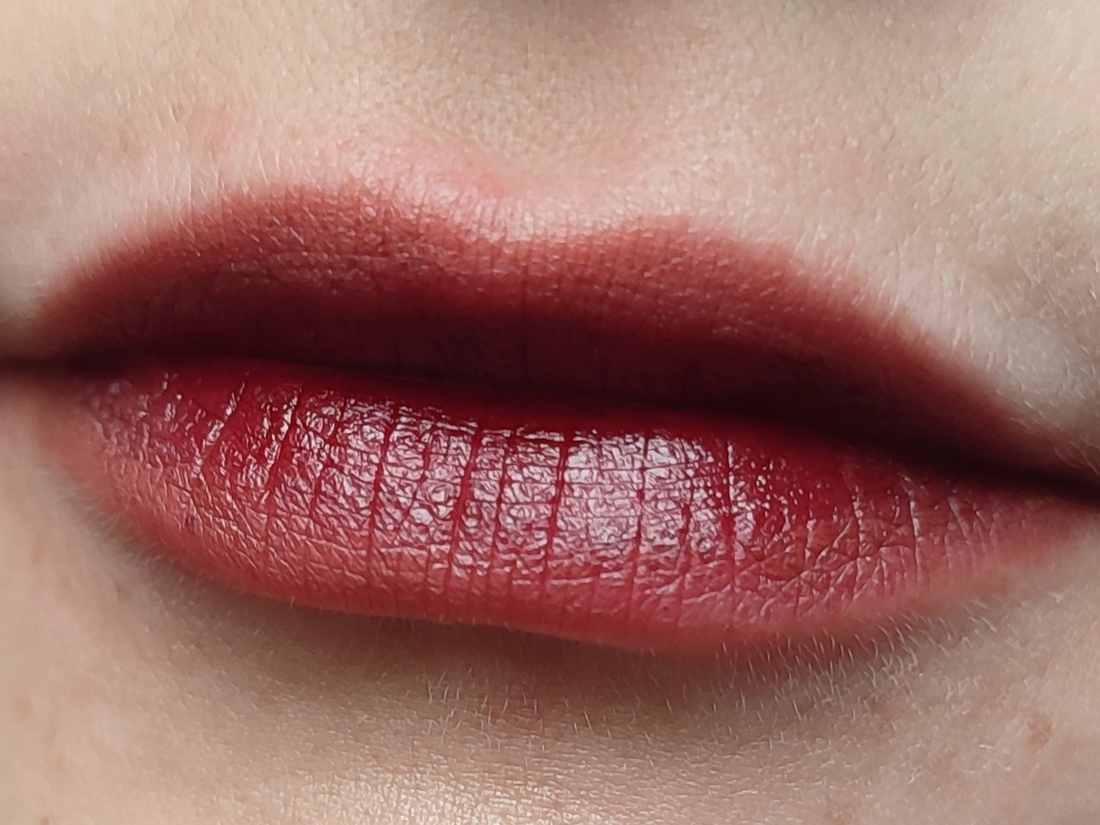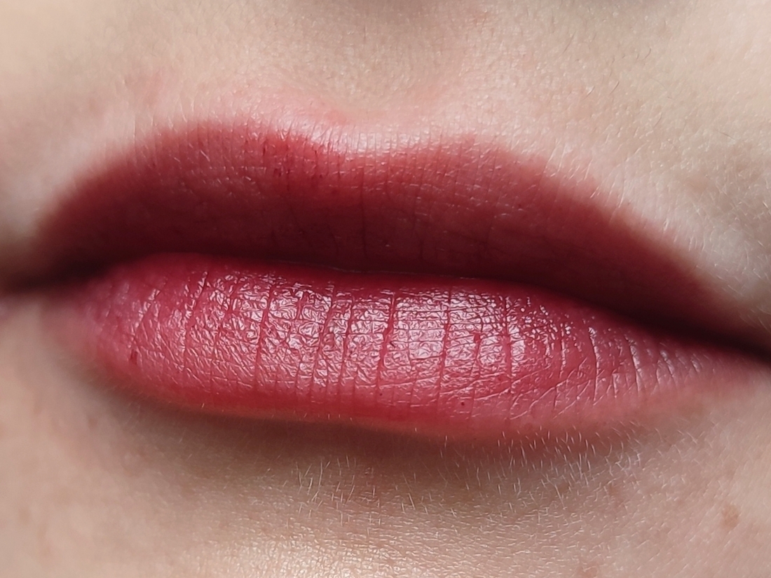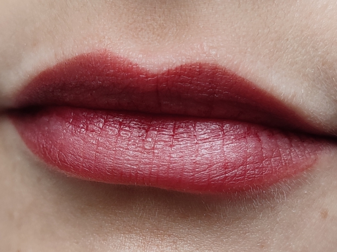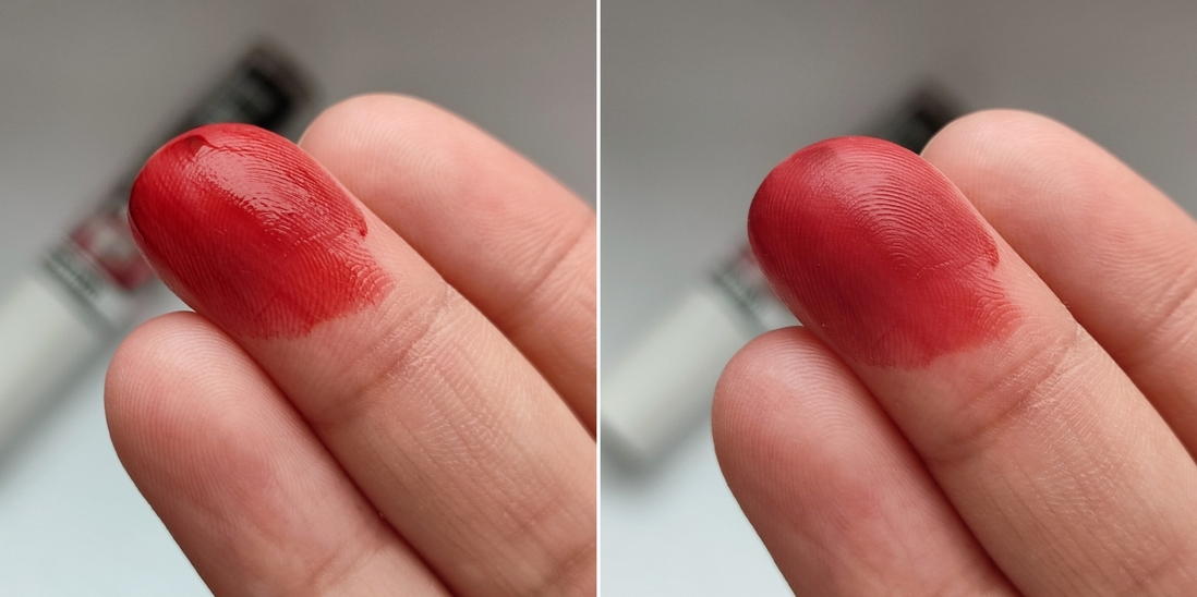 Если не распределять тинт по губам, а нанести густую каплю-свотч и оставить, то оттенок получается похож на ожидаемый, но такую густую каплю невозможно носить.