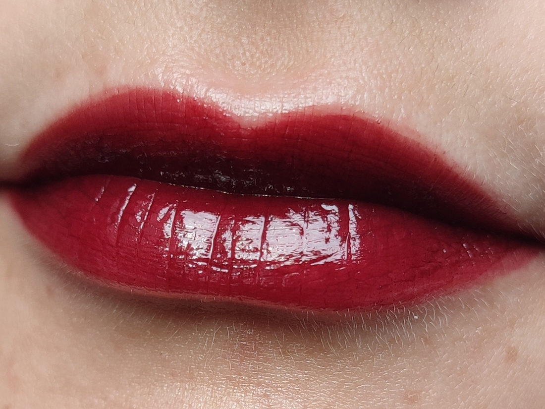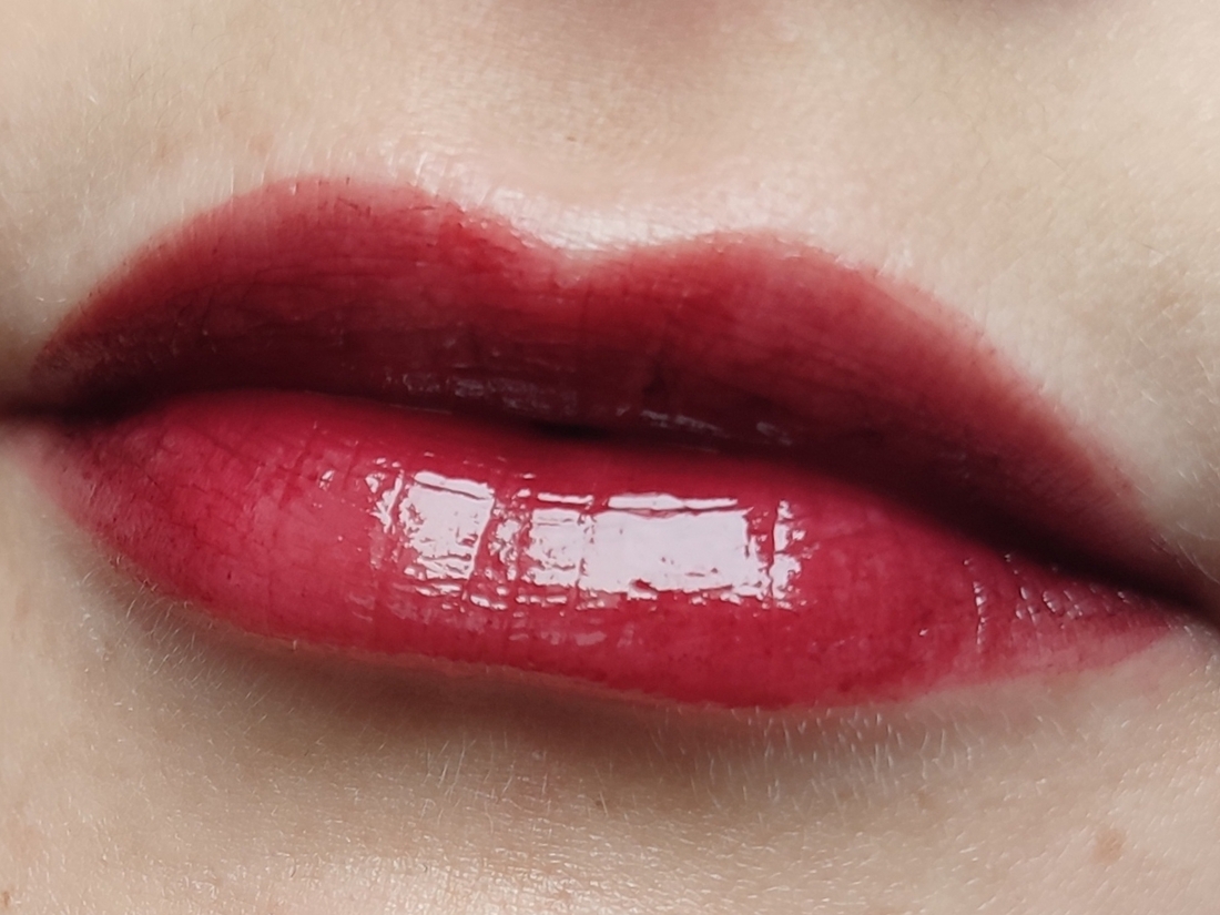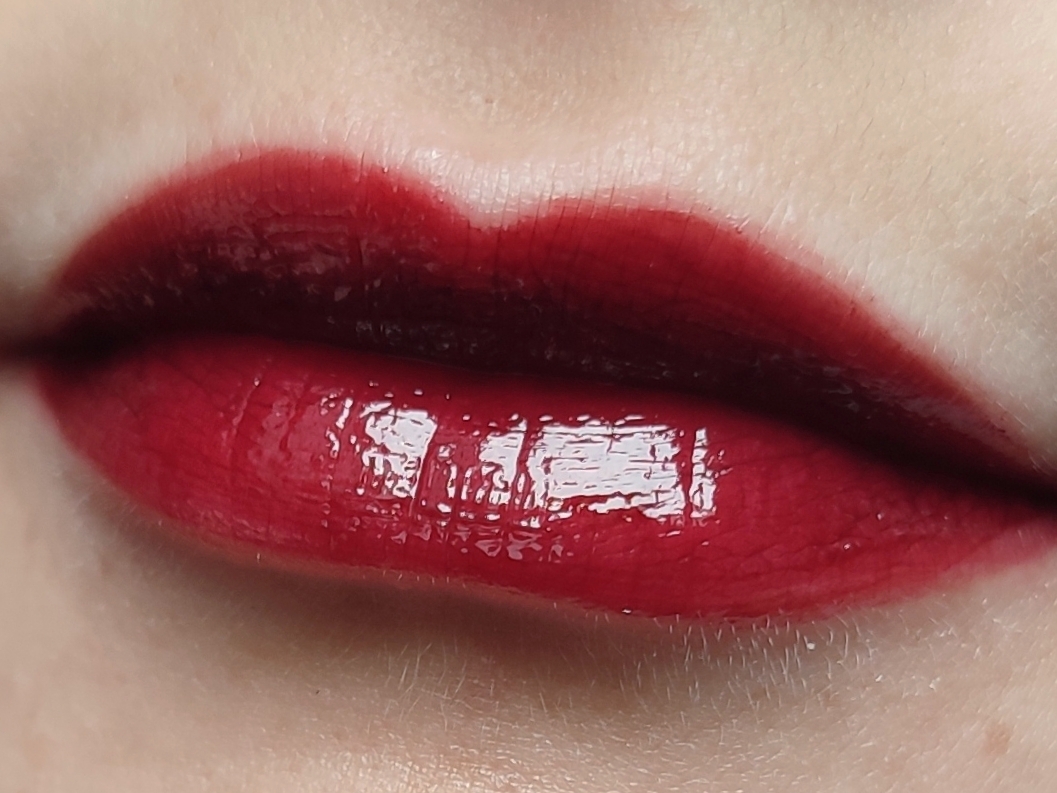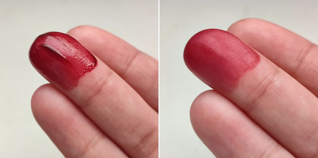 А как только распределяешь цвет, случается магия, и тинт превращается в глянцевое вино. Свотч на пальце: