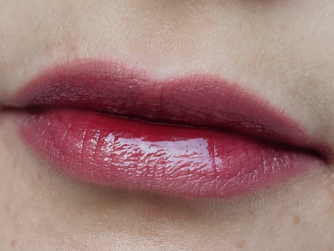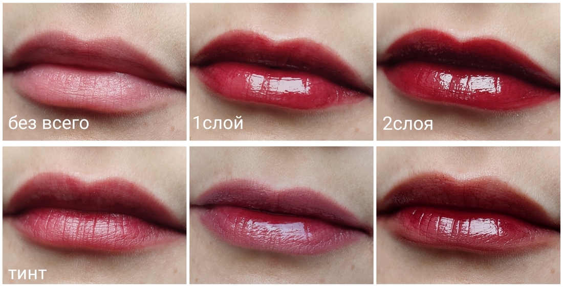 Так тинт выглядит после усадки, глянец держится 3-4 часа или до еды.