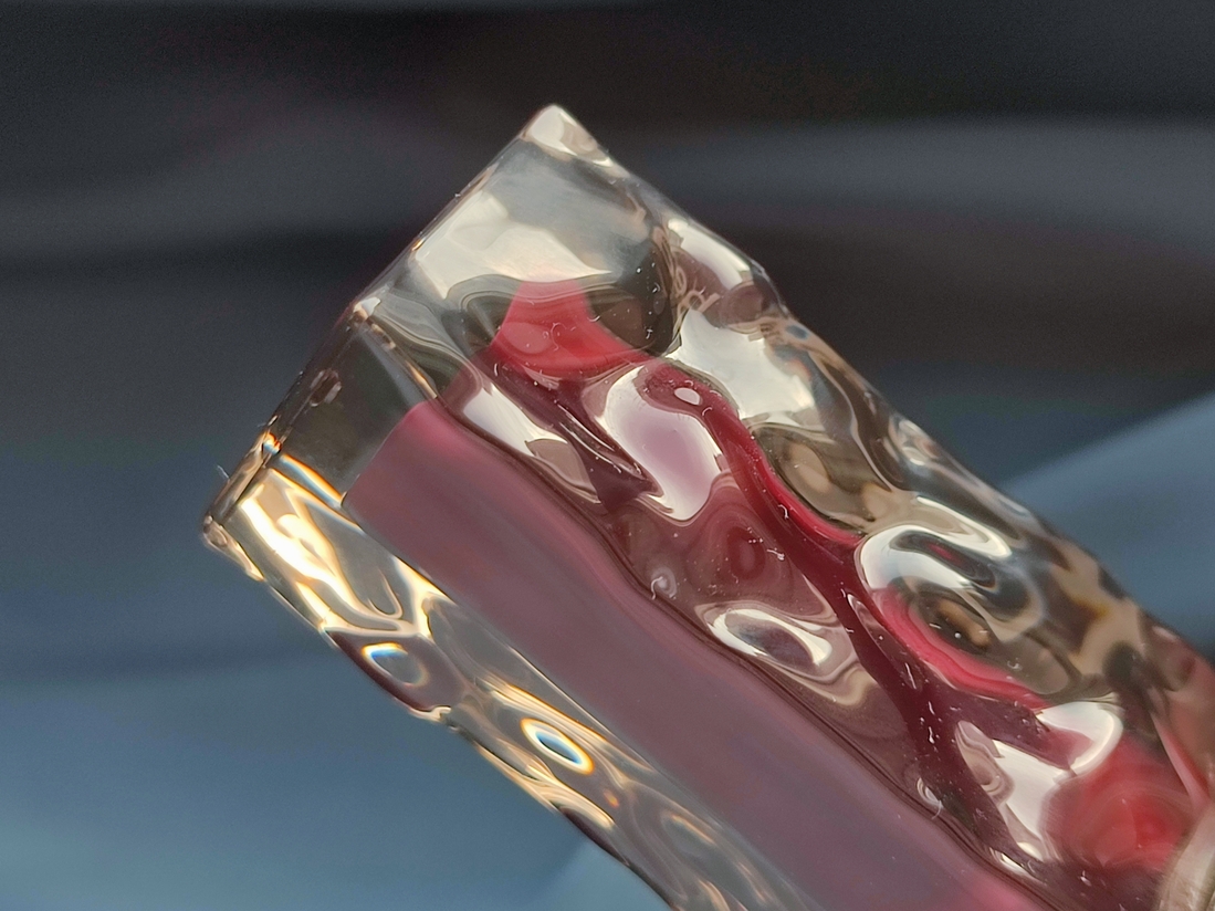 Флакон нереально красивый. Держишь эту пластиковую бутылочку за прилипший ко льду металлический камень и думаешь, как бы он полностью не растаял. Ну посмотрите, как играет свет на пластмассовых волнах!