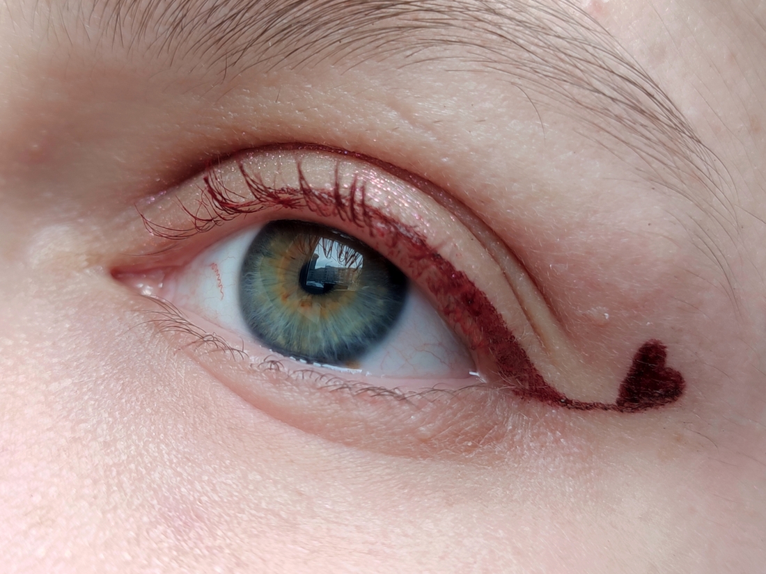 Ну а дальше — обещанные макияжи для Дня влюбленных. Пошаговых инструкций не будет, но я постараюсь кратко описать, что к чему, и схему оставить. Впереди будет много Каберне Совиньон.