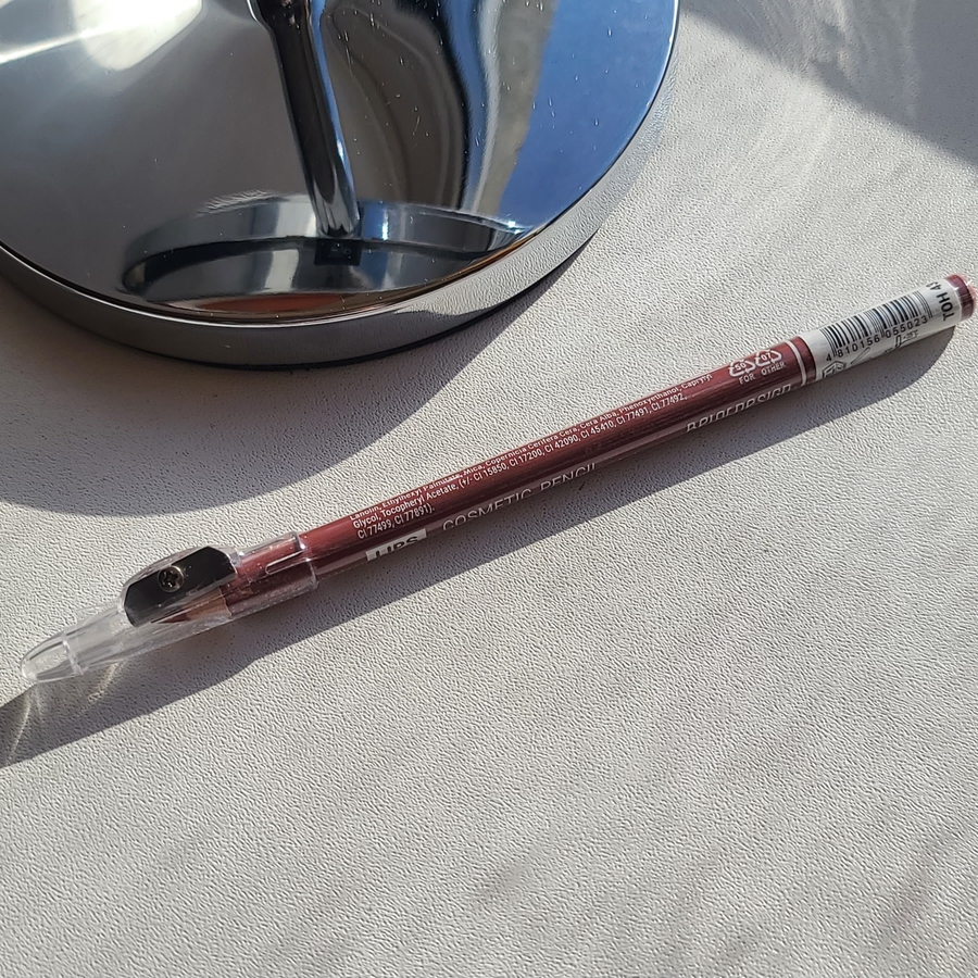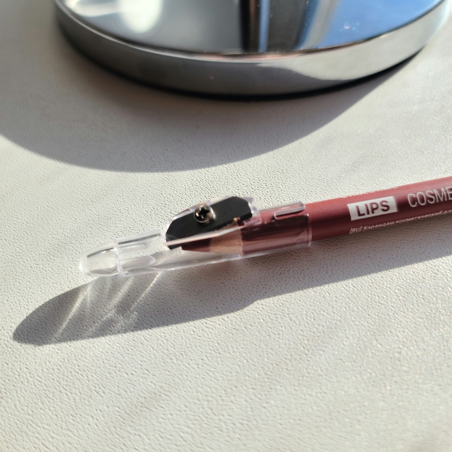 Сам карандаш — классический деревянный, требует заточки. Главная фишка — удобный колпачок со встроенной точилкой. Это практичное решение для дома и особенно для дорожной косметички. Точилка действительно острая и качественная, не ломает грифель.