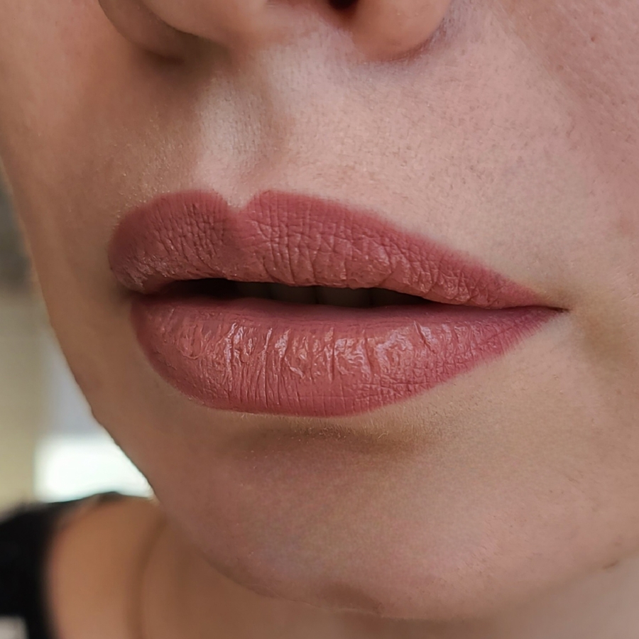 Результат: даёт красивый, графичный контур. Для заполнения всех губ он тоже подходит, но из-за более плотной текстуры я предпочитаю использовать его именно для контура, а для заполнения брать более кремовую помаду.