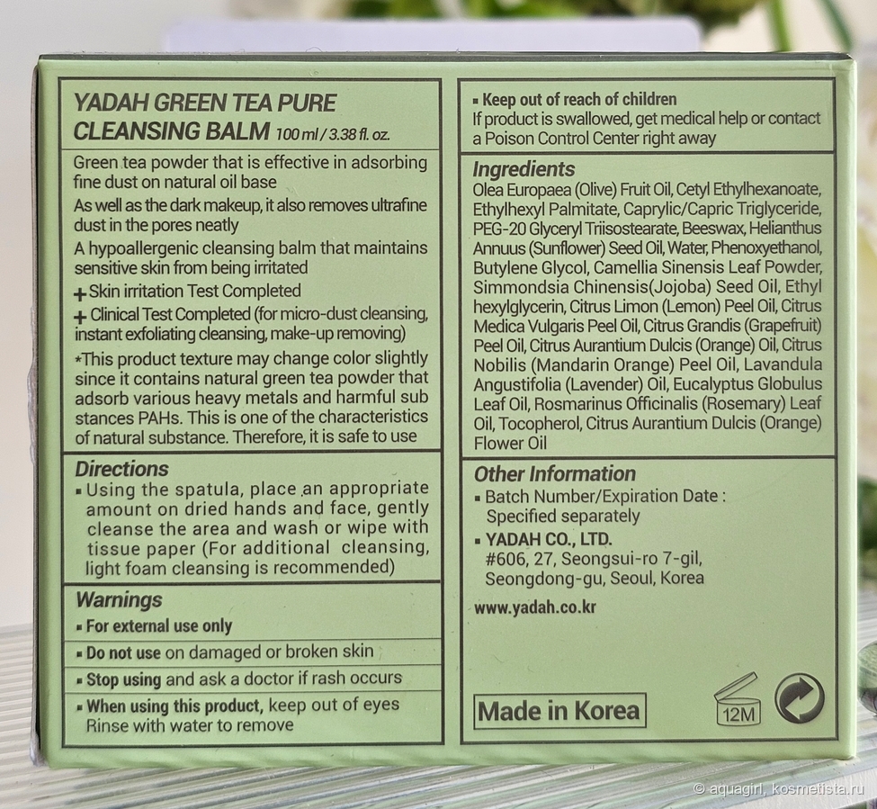 Сегодня мы с вами посмотрим на бестселлер марки Yadah — очищающий бальзам с зелёным чаем.