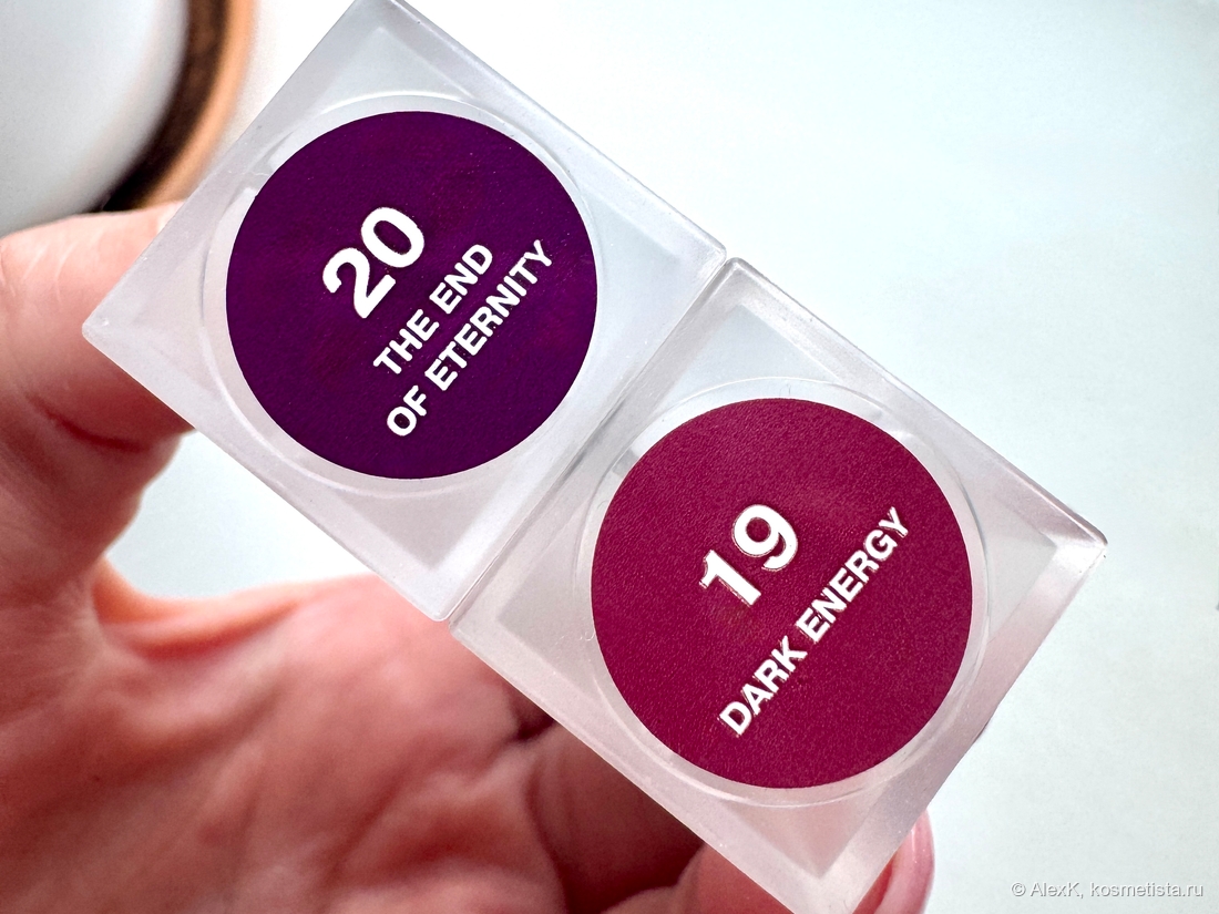 - По сравнению с №20 (темно-сливовым из предыдущего обзора) этот вариант не выглядит светлее — скорее более красный и чуть теплее.