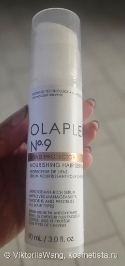 Olaplex No.9 Bond Protector Nourishing Hair Serum (20 мл.) — многофункциональная питательная сыворотка для укладки. Нужно нанести на влажные волосы перед укладкой, обладает термозащитой до 450°F/232°C.